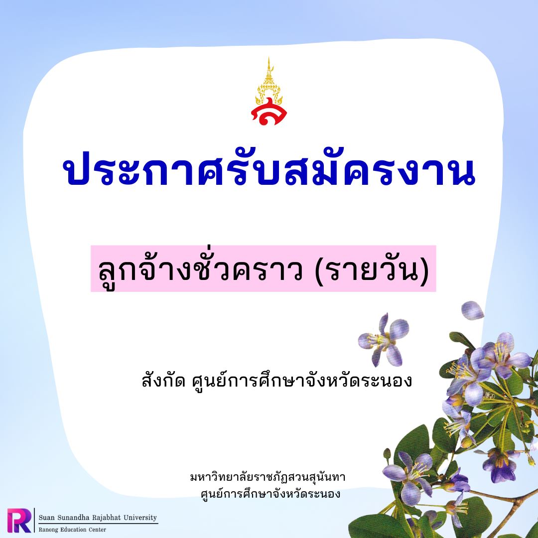 You can apply in person at the Ranong Provincial Education Center. Suan Sunandha Rajabhat University (Apply every day, excluding public holidays) Contact us at 077-813308 and 080-7421882