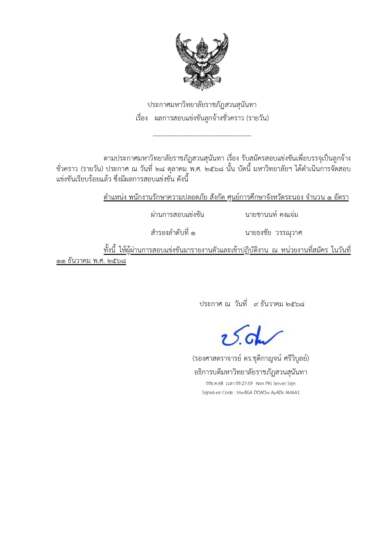 Announcement of the results of the temporary employee competitive examination (daily) under the Ranong Provincial Education Center