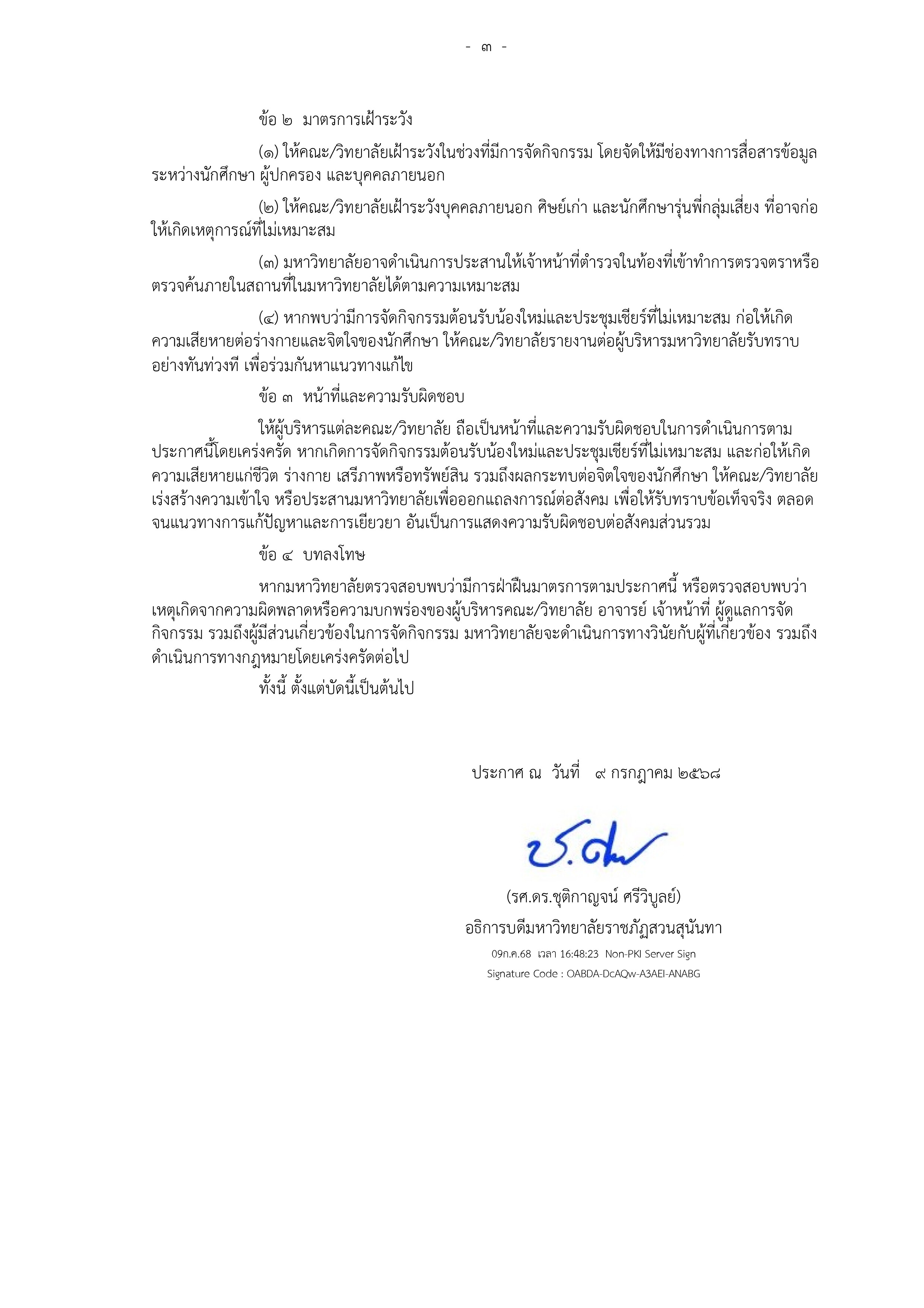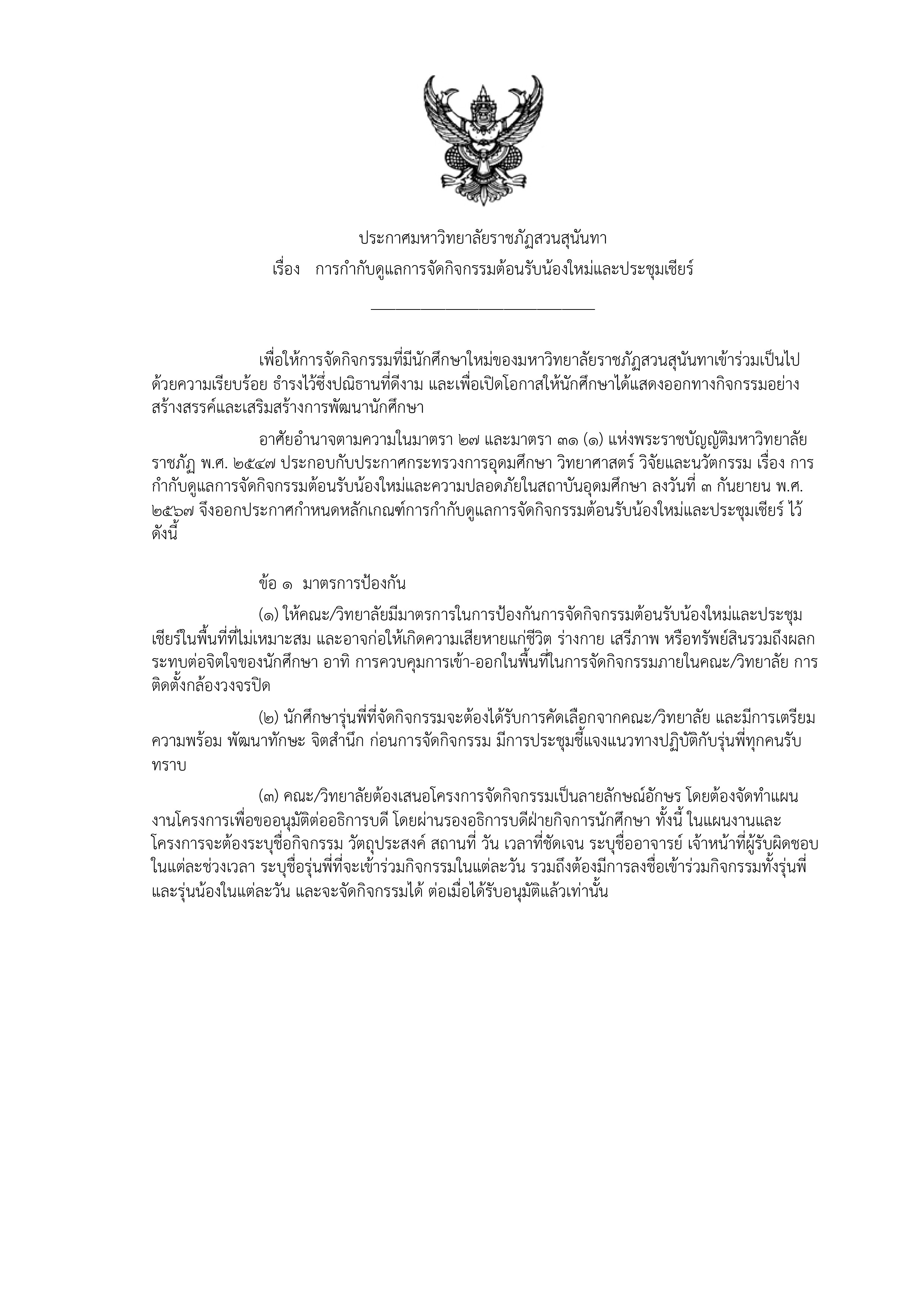 Announcement from Suan Sunandha Rajabhat