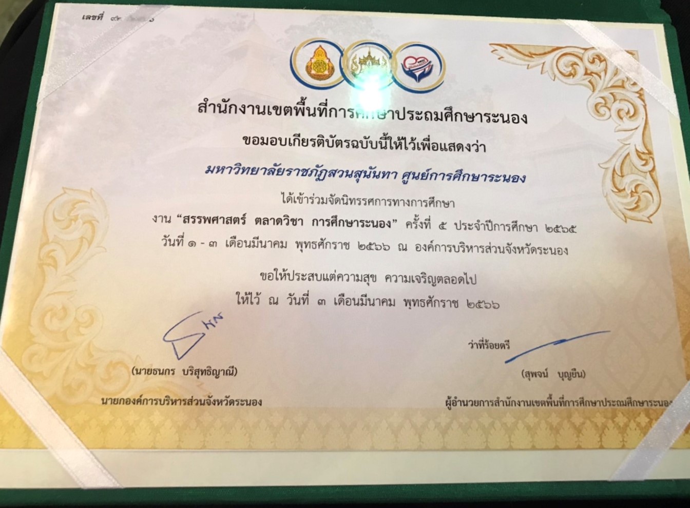 วันนี้ (1 มี.ค.66) อาจารย์ ดร.สุวัฒน์ นวลขาว ผู้อำนวยการศูนย์การศึกษาจังหวัดระนองนำทีมคณาจารย์และบุคลากรศูนย์การศึกษาจังหวัดระนอง ร่วมออกบูธงาน "สรรพศาสตร์ ตลาดวิชา การศึกษาระนอง" ครั้งที่ ๕ ซึ่งจัดขึ้นระหว่างวันที่ 1 - 3 มีนาคม 2566 โดยสำนักงานเขตพื้นที่การประถมศึกษาจังหวัดระนอง ณ องค์การบริหารส่วนจังหวัดระนอง