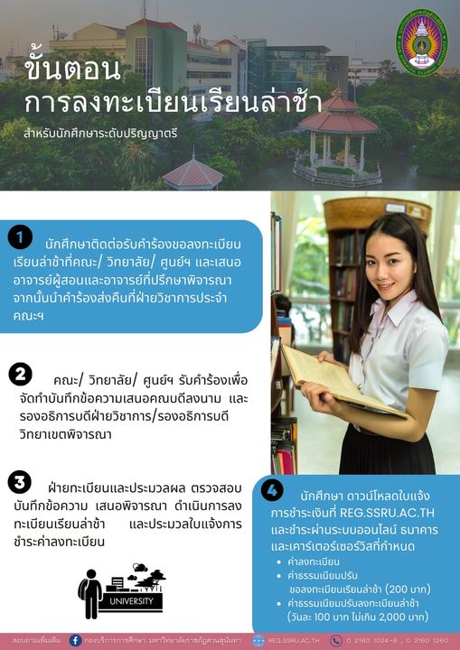 ขั้นตอนการลงทะเบียนเรียนล่าช้า สำหรับนักศึกษาระดับปริญญาตรี