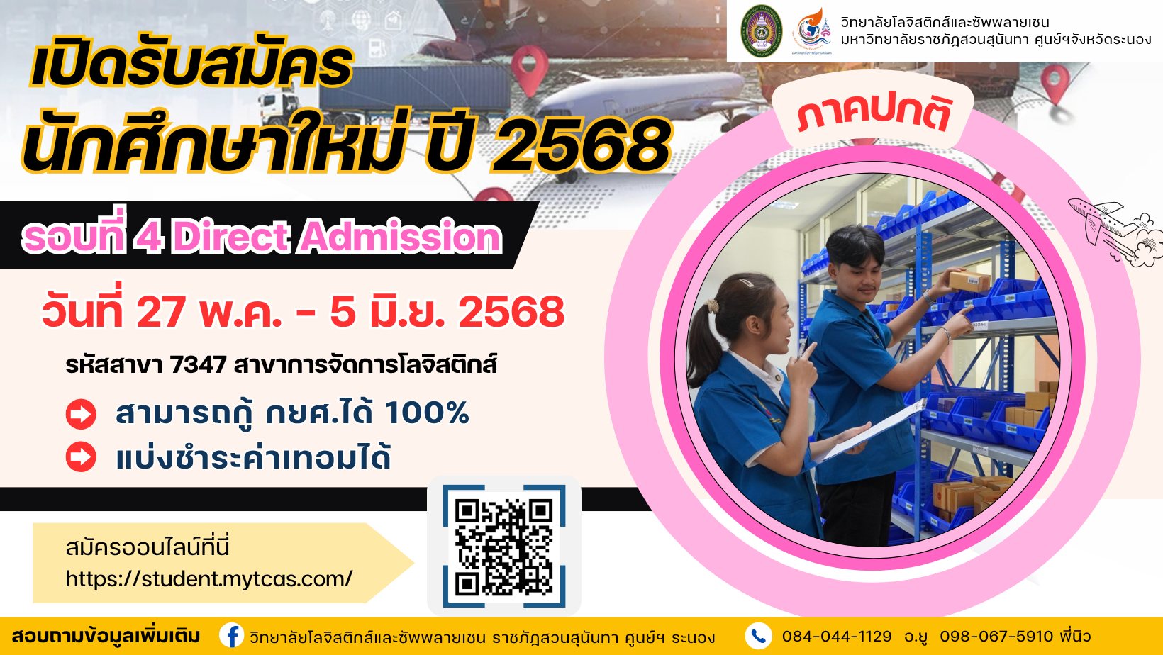 Logistics and Supply Chain College, Suan Sunandha Rajabhat UniversityRanong Educational Center is open for new student applications