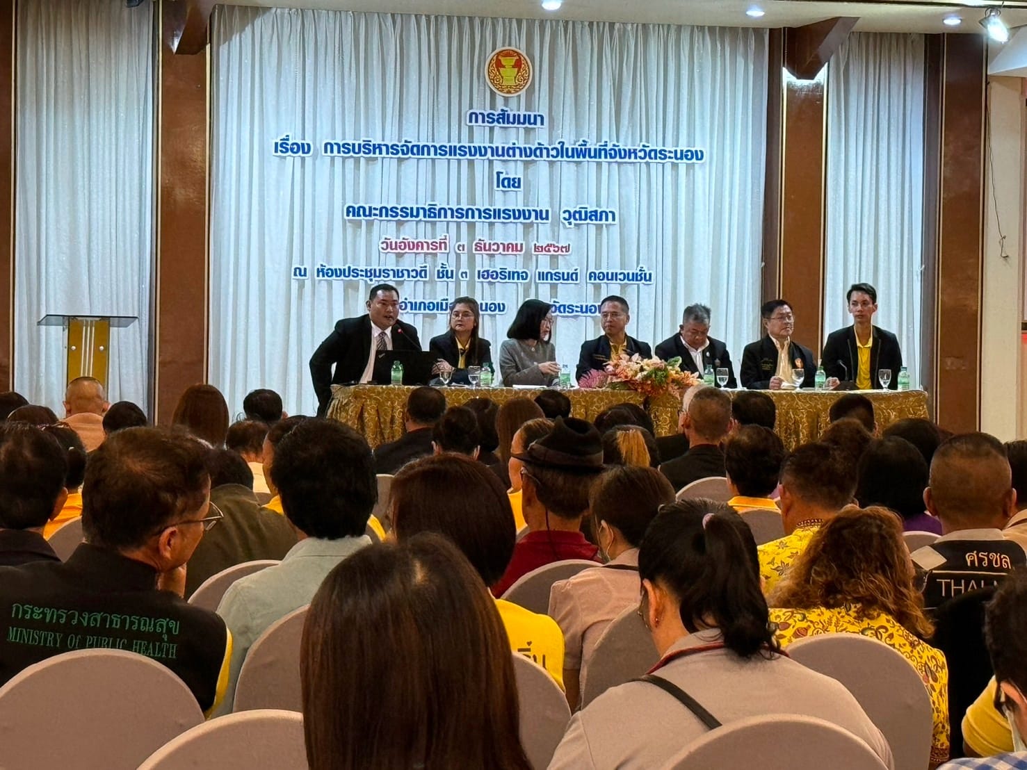 Morning session on December 3, 2024, Lecturer Dr. Suwat Nuankhao, Director of Ranong Provincial Education Center Participated in the seminar on "Management of Foreign Workers in Ranong Province" by the Senate Labor Committee at the Rachawadee Heritage Grand Convention Meeting Room, Ranong Province.