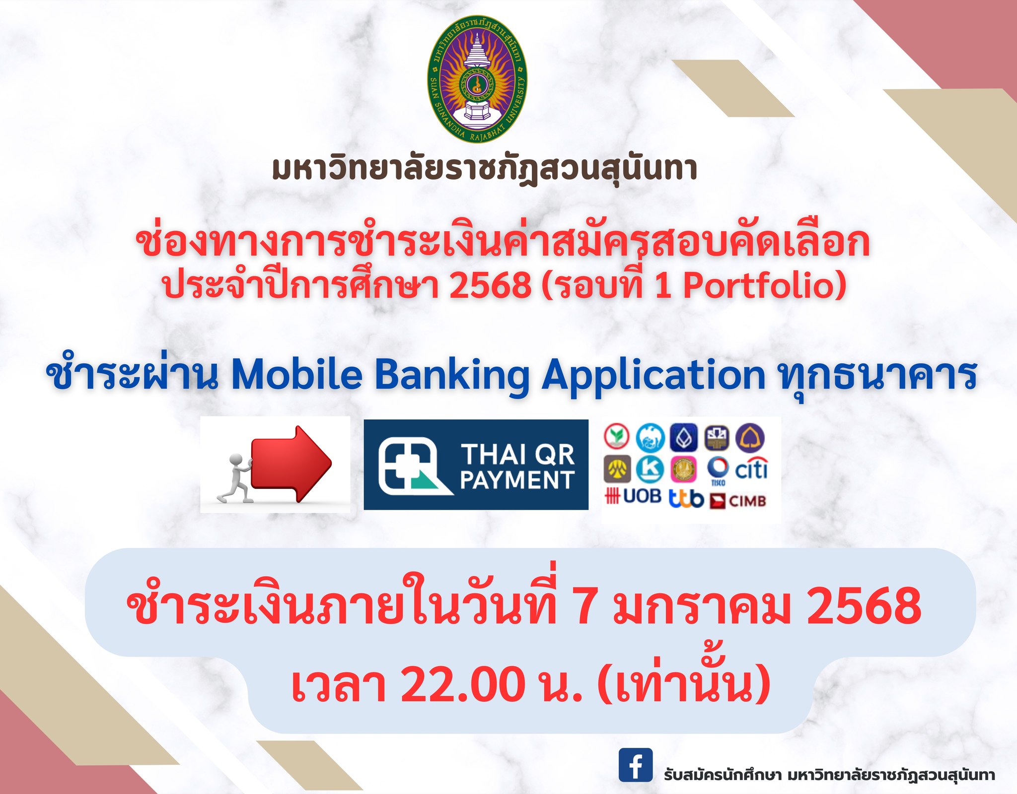 For more information: Recruiting students Suan Sunandha Rajabhat University or call 02-160-1380