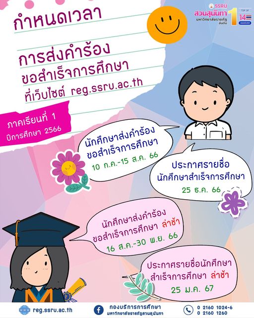 **การส่งคำร้องขอสำเร็จการศึกษา ประจำภาคเรียนที่ 1 ปีการศึกษา 2566 ที่ reg.ssru.ac.th**