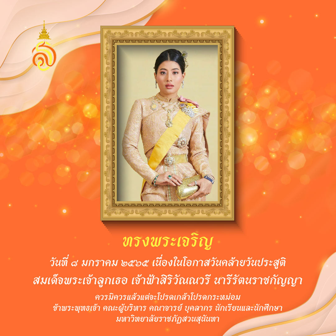 Home > News > public relations > 8 มกราคม วันคล้ายวันประสูติ สมเด็จพระเจ้าลูกเธอ เจ้าฟ้าสิริวัณณวรี นารีรัตนราชกัญญา