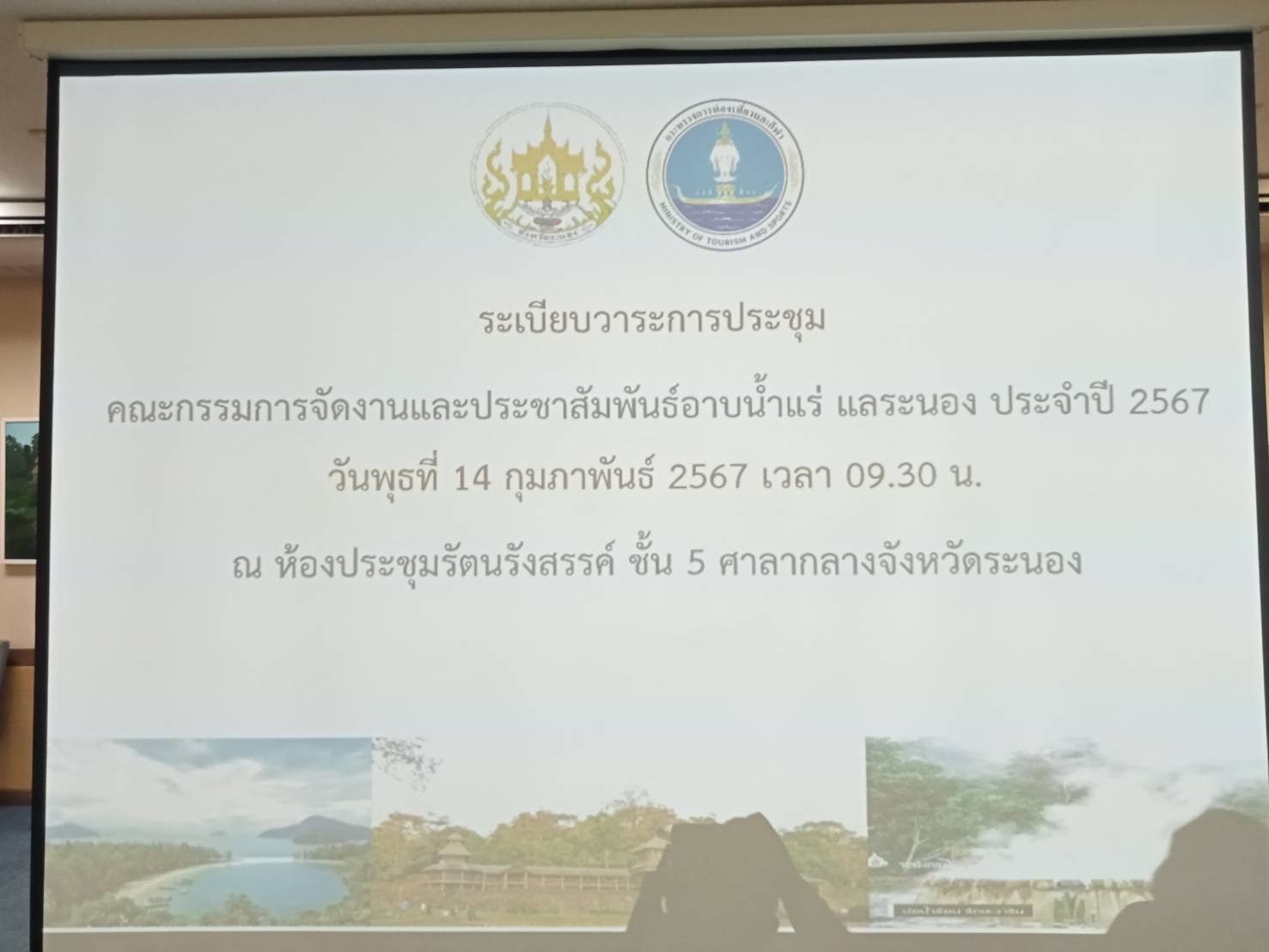 ช่วงเช้า  วันนี้ (14 ก.พ.67)อาจารย์  ดร.สุวัฒน์  นวลขาว  ผู้อำนวยการศูนย์การศึกษาจังหวัดระนอง  เข้าร่วมการประชุมการจัดกิจกรรม จัดงานประชาสัมพันธ์อาบน้ำแร่  แลระนอง  ประจำปี 2567 ณ  ห้องประชุมรัตนรังสรรค์  ชั้น 5ศาลากลางจังหวัดระนอง ซึ่งกำหนดจัดงานในระหว่างวันที่ 29  มีนาคม - 7  เมษายน 2567 โดยมีวัตถุปหระสงค์เพื่อส่งเสริมการท่องเที่ยว  และการเผยแพร่ประชาสัมพันธ์ยุทธศาสตร์การพัฒนาจังหวัด  ไปสู่กลุ่มเป้าหมายและผู้มีส่วนได้ส่วนเสีย และสร้างกิจกรรมประจำปีเพื่อเป็นปฏิทินท่องเที่ยวของจังหวัด