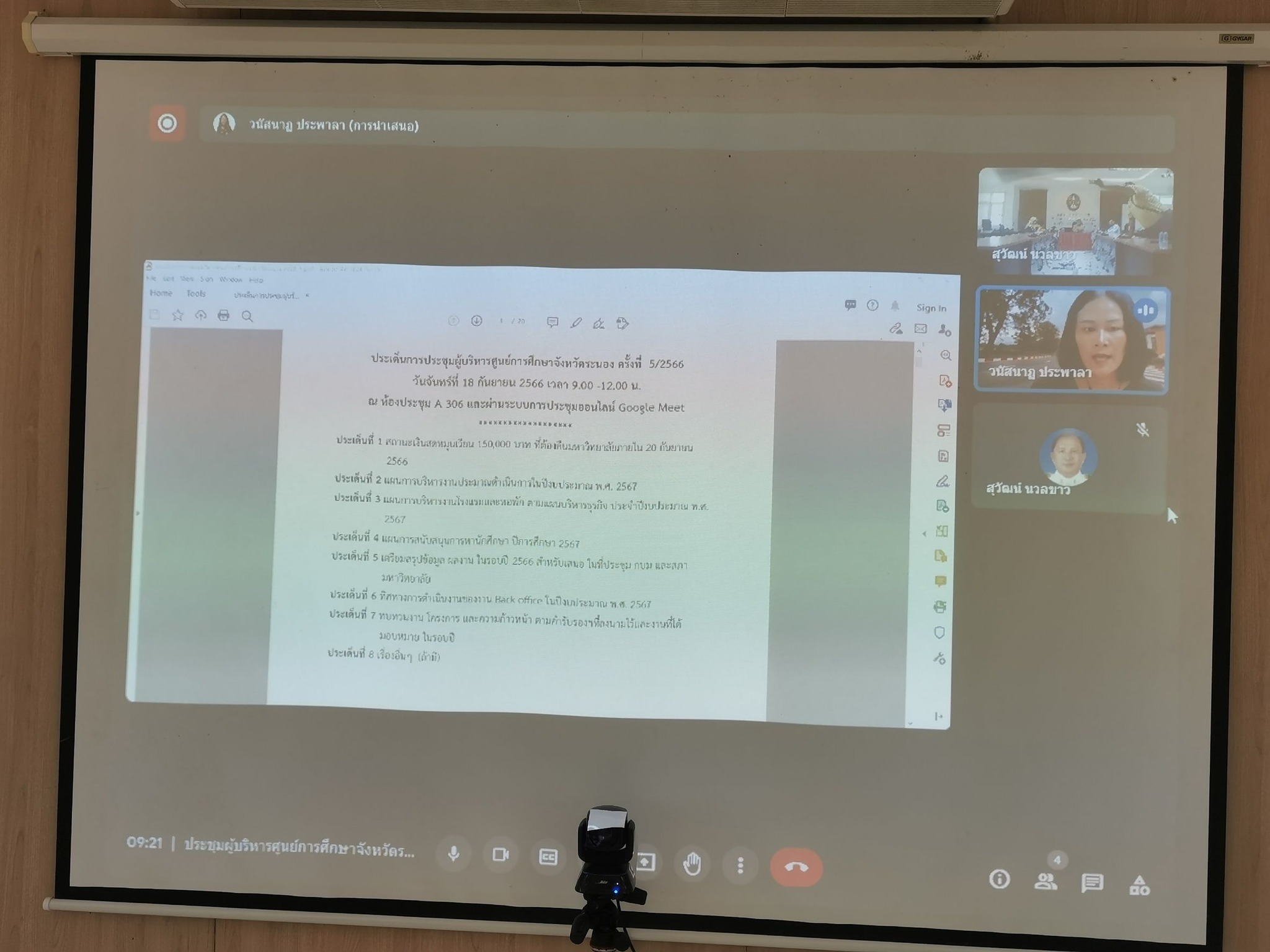 ช่วงเช้า วันนี้ (18 ก.ย.66) อาจารย์ ดร.สุวัฒน์ นวลขาว ผู้อำนวยการศูนย์การศึกษาจังหวัดระนอง เป็นประธานในการประชุมผู้บริหารศูนย์การศึกษาจังหวัดระนอง เพื่อเป็นการสรุป ผลงาน และทบทวนงานโครงการต่างๆก่อนสิ้นปีงบประมาณ 2566 และแนวทางการดำเนินงานโครงการฯรวมถึง การบริหารงบประมาณ ปี 2567  ณ ห้องประชุมA306 โดยมีผู้ที่เกี่ยวข้องเข้าร่วมประชุม