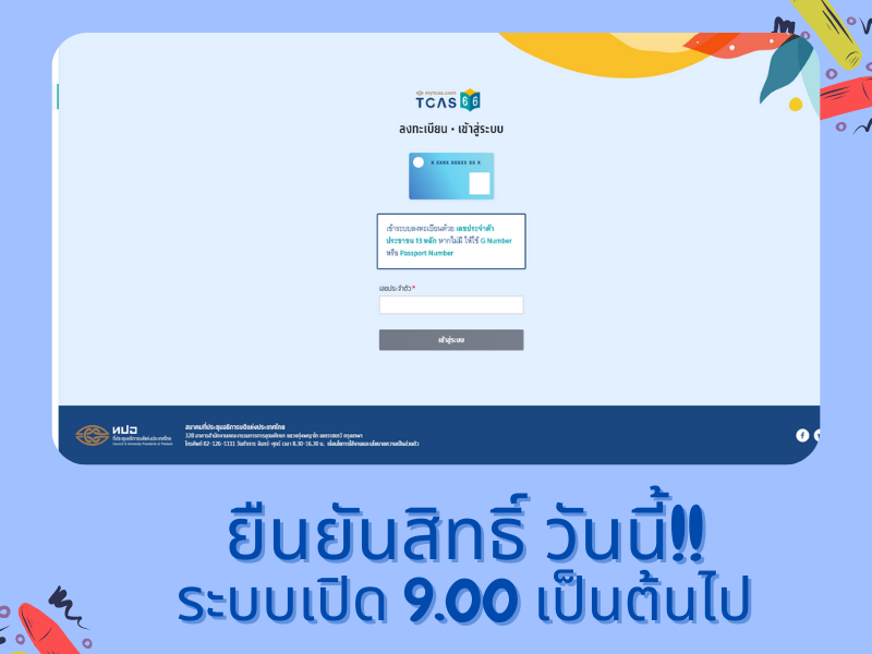 เข้าระบบยืนยันสิทธิ์ คลิก คลิก https://student.mytcas.com