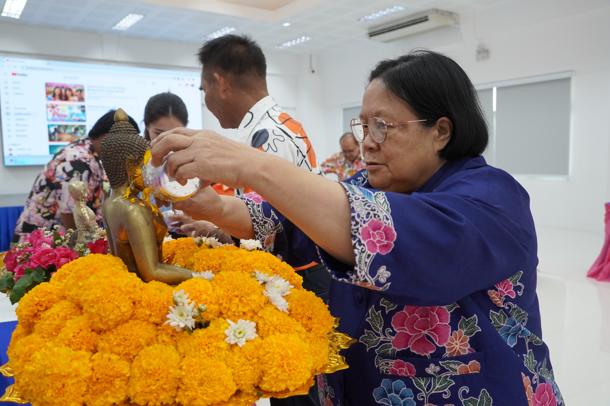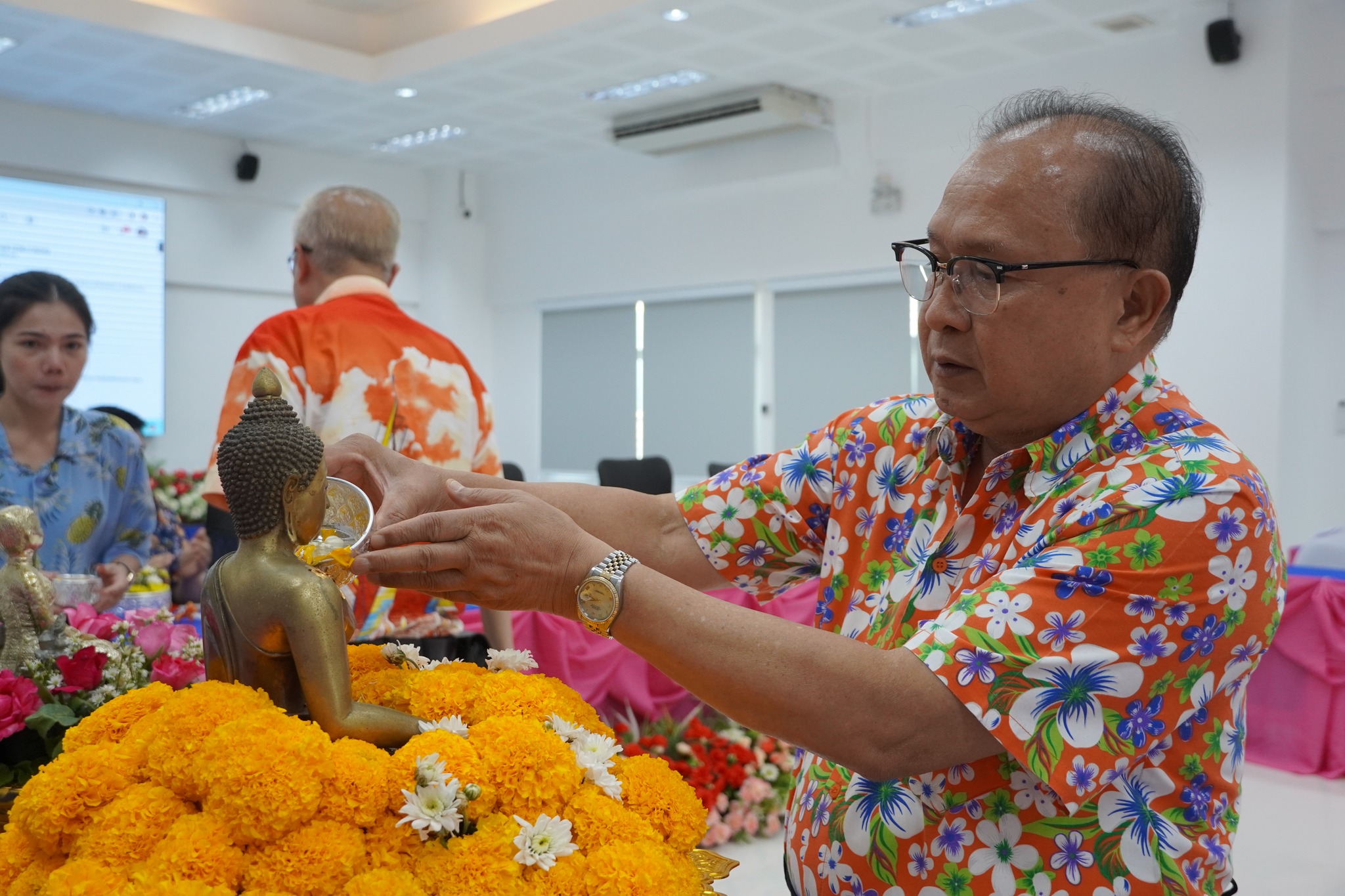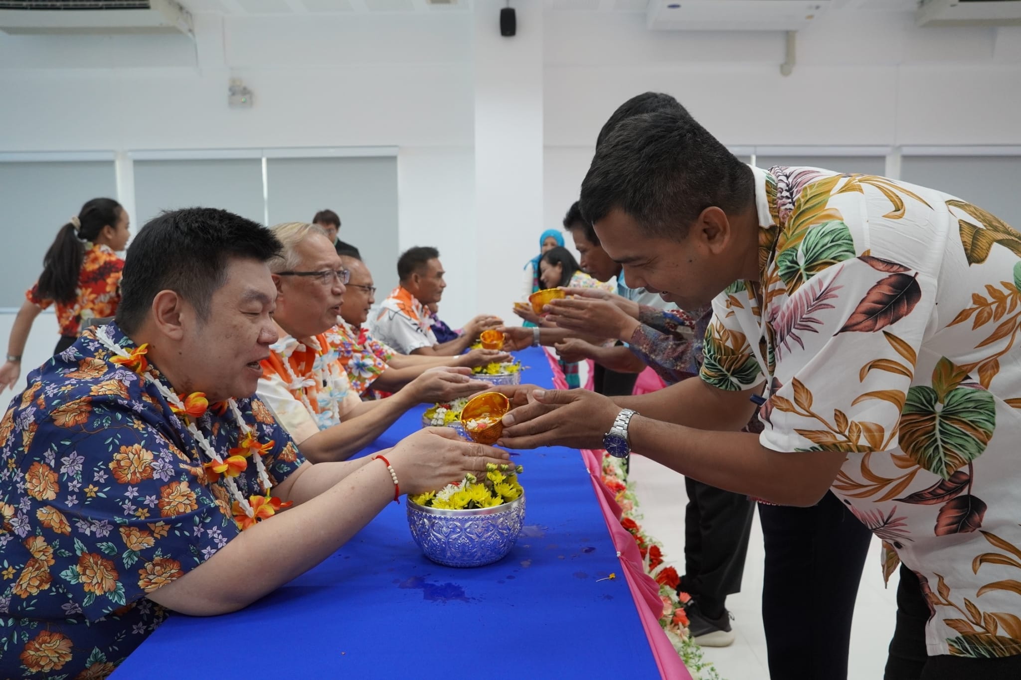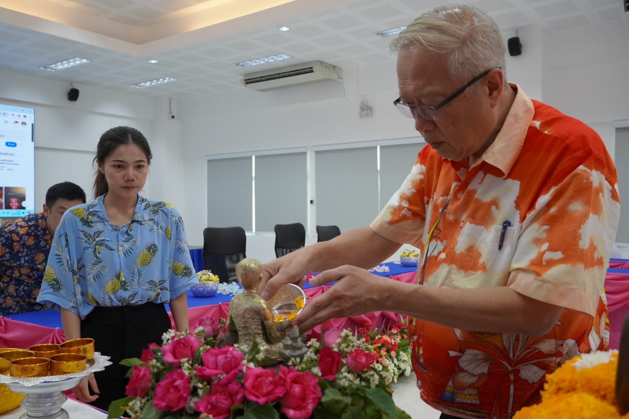 วันพุธที่ 10 เมษายน 2567 ศูนย์การศึกษาจังหวัดระนอง จัดกิจกรรมพิธีรดน้ำขอพรผู้ใหญ่วันสงกรานต์ เพื่อส่งเสริมให้นักศึกษาและบุคลากรได้สืบสานประเพณีสงกรานต์อันดีงาม โดยมีการสรงน้ำพระพุทธ และรูปหล่อสมเด็จพระนางเจ้าสุนันทากุมารีรัตน์ พระบรมราชเทวี รดน้ำขอพรจากคณะผู้บริหาร และคณะผู้บริหารให้พรเพื่อความเป็นสิริมงคลในวันปีใหม่ไทย โดยภายในงานได้รับเกียรติจากรองศาสตราจารย์ ดร.บัณฑิต ผังนิรันดร์ รองอธิการบดีฝ่ายวิจัยและพัฒนา อาจารย์ ดร.สุวัฒน์ นวลขาว ผู้อำนวยการศูนย์การศึกษาจังหวัดระนอง ผู้ช่วยศาสตราจารย์ ดร.ธนพล ก่อฐานะ ประธานหลักสูตรปรัชญาดุษฎีบัณฑิต สาขาวิชานวัตกรรมการจัดการ และคณะผู้บริหารจากหน่วยงาน อาจารย์และเจ้าหน้าที่ เข้าร่วมงาน