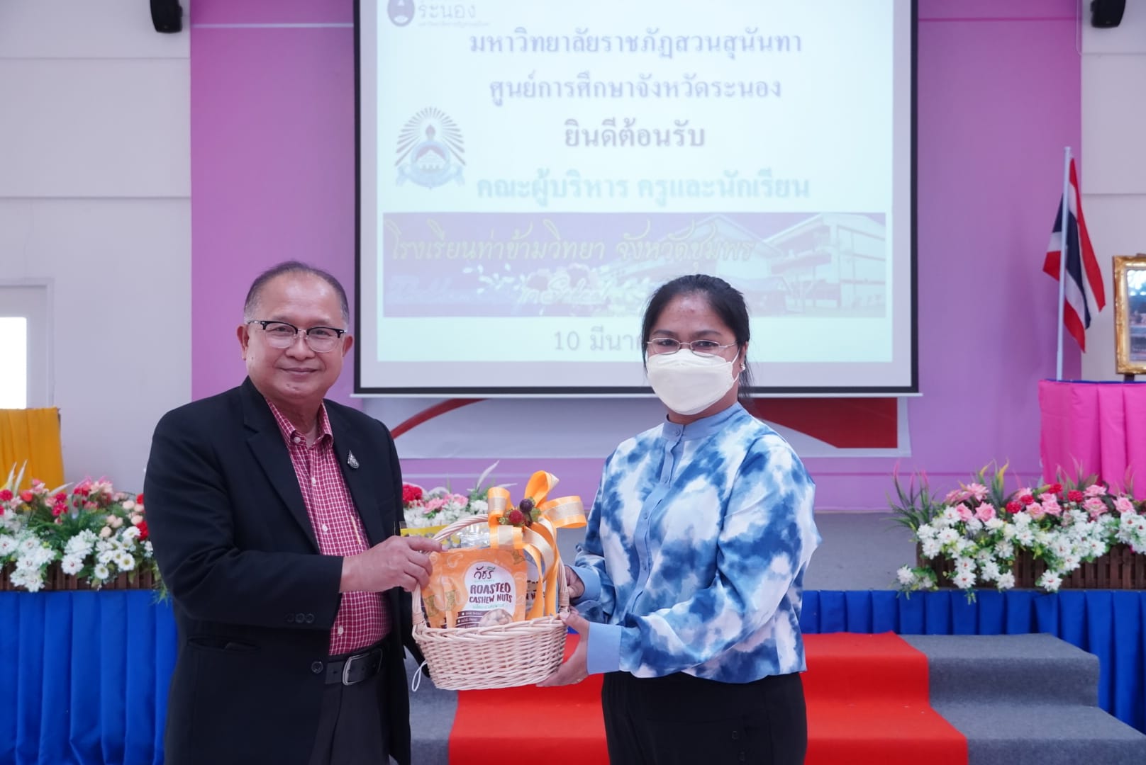 ช่วงเช้า (10  มี.ค.66)  อาจารย์ ดร.สุวัฒน์ นวลขาว ผู้อำนวยการศูนย์การศึกษาจังหวัดระนอง พร้อมด้วยคณาจารย์ศูนย์การศึกษาจังหวัดระนอง ร่วมต้อนรับนางอาริษา วัฒนครใหญ่ รองผู้อำนวยการโรงเรียนท่าข้ามวิทยา (อ.ท่าแซะ จ.ชุมพร) และคณะครู อาจารย์ นักเรียนโรงเรียนท่าข้ามวิทยา ณ ห้องประชุมชั้น 4  ศูนย์การศึกษาจังหวัดระนอง