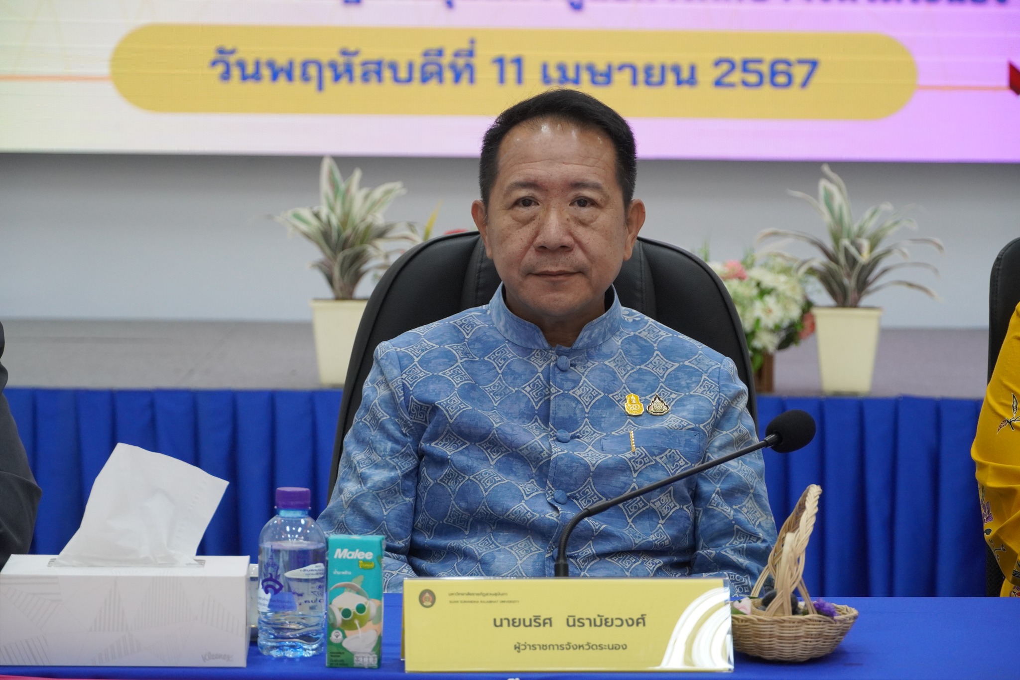 In the morning of April 11, 2024, Ranong Education Center held a signing ceremony. MOU memorandum of understanding Between Suan Sunandha Rajabhat University and Ranong Community College at Kaew Chao Chom Conference Room. Ranong Education Center which Suan Sunandha Rajabhat University Signed by Assoc. Prof. Dr. Chutikarn Sriwiboon, President of Suan Sunandha Rajabhat University. and Assoc. Prof. Dr. Bandit Phangniran, Vice President for Research and Development. Ranong Community College signed by Acting Second Lieutenant Kritsada Chimphliwat, Director of Ranong Community College. and Associate Professor Dr. Chusak Ekphet, Chairman of the Community College Council, signed with Mr. Naris Niramaiwong, Governor of Ranong Province. presiding over the ceremony