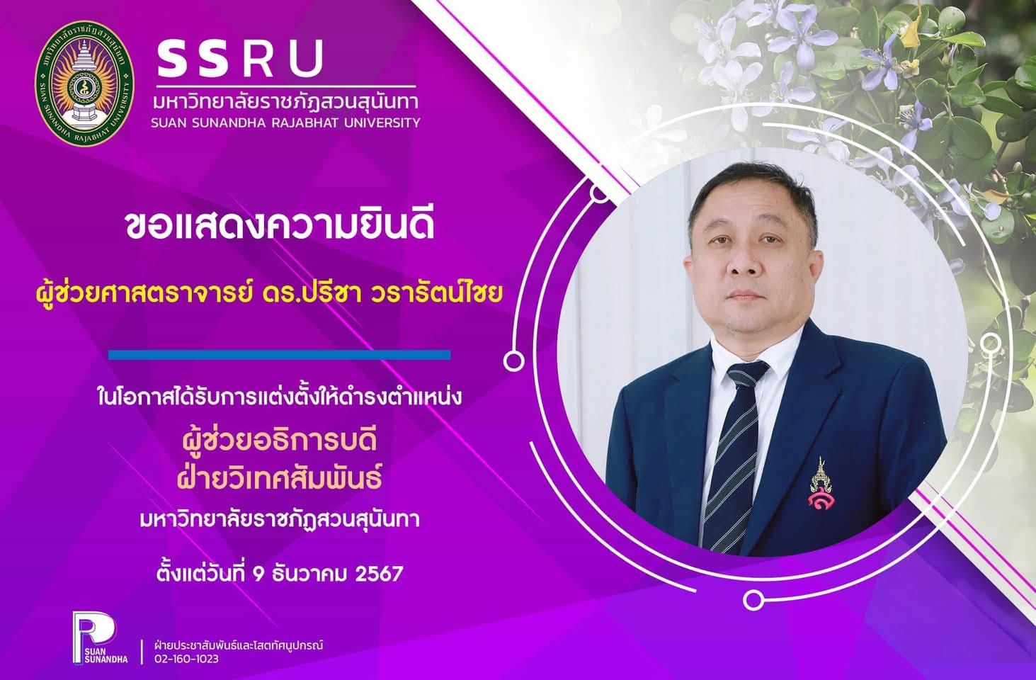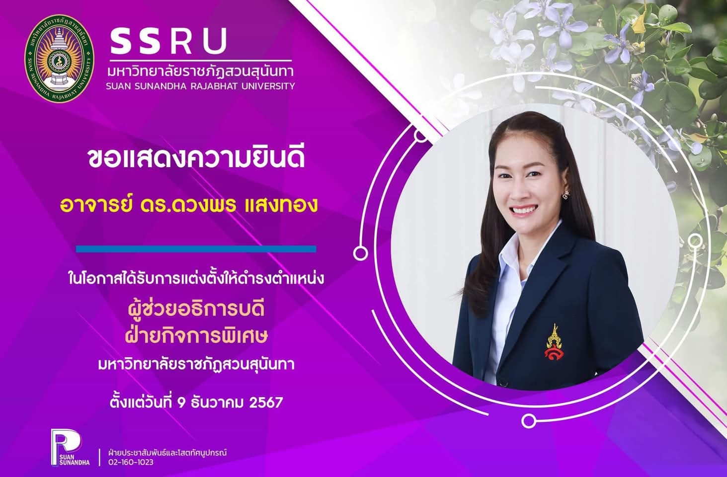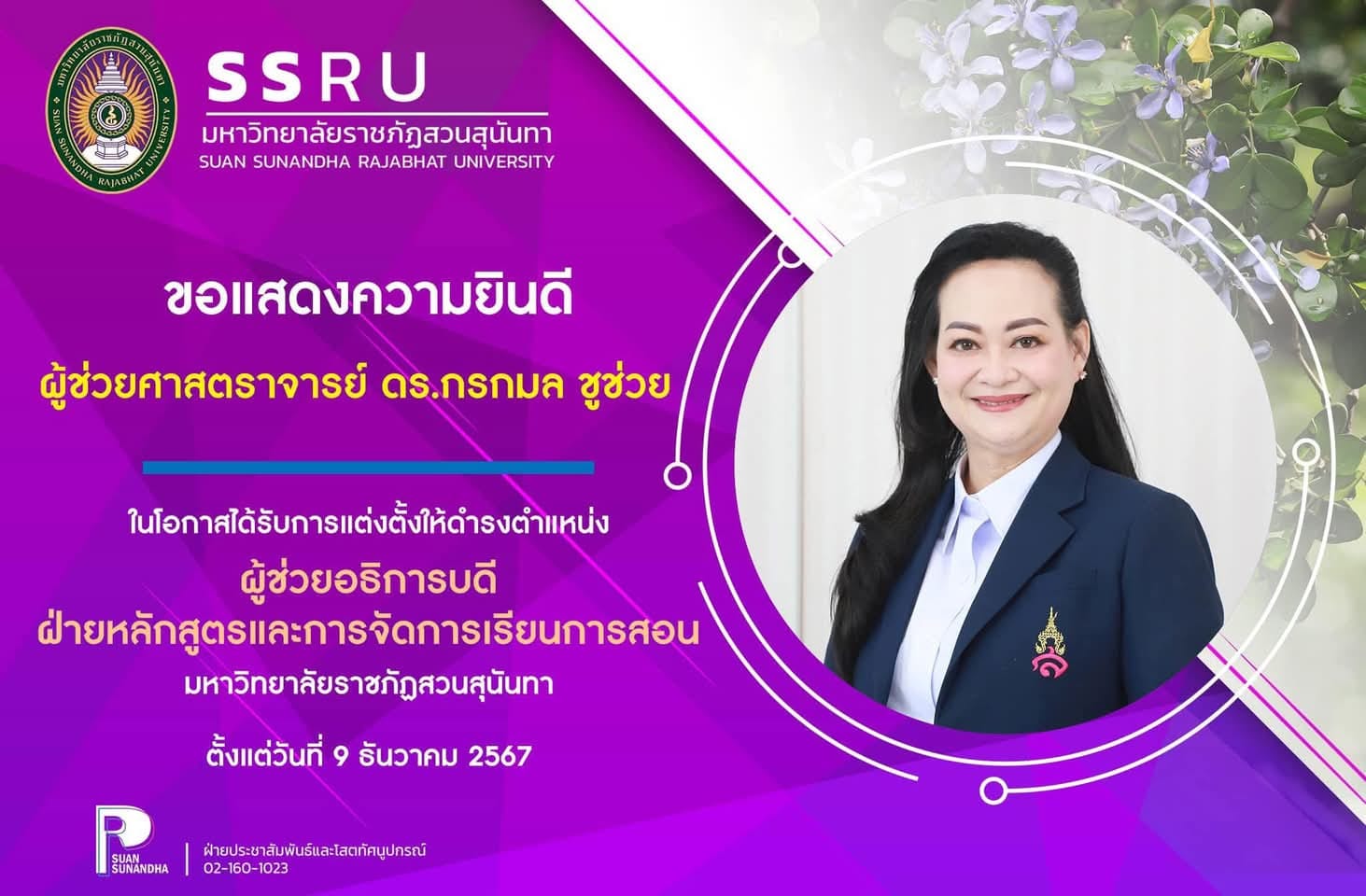 Suan Sunandha Rajabhat University Ranong Provincial Education Center Congratulations to the management team. On the occasion of being appointed to the position of Assistant Rector According to the resolution of the Suan Sunandha Rajabhat University