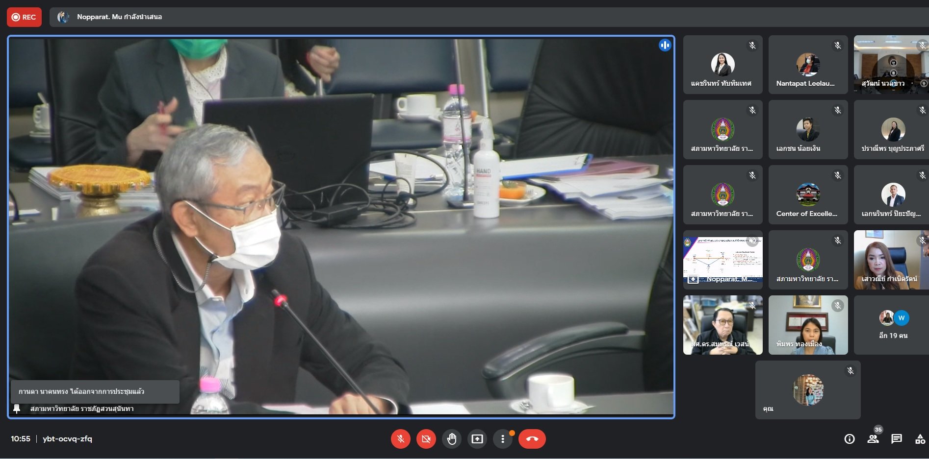ช่วงเช้า วันที่ 11 กรกฎาคม 2565 ดร.สุวัฒน์ นวลขาว ผู้อำนวยการศูนย์การศึกษาจังหวัดระนอง เข้าร่วมการประชุมคณะกรรมการบริหารมหาวิทยาลัย มหาวิทยาลัยราชภัฏสวนสุนันทา ครั้งที่ 7/2565 โดยมีรศ.ดร.ชุติกาญจน์ ศรีวิบูลย์ อธิการบดีเป็นประธาน ณ ห้องประชุม A306 ศูนย์การศึกษาจังหวัดระนอง ผ่านทางระบบการประชุมออนไลน์