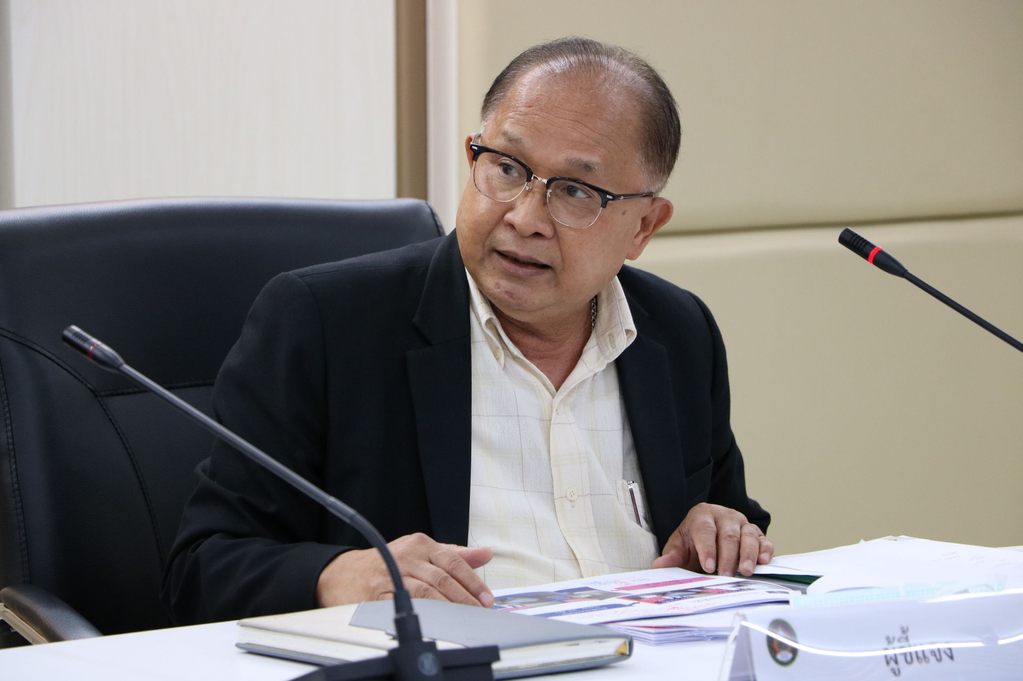 Ajarn Dr. Suwat Nualkhao presents the business management plan. Fiscal year 2024 of the Ranong Provincial Education Center to the budget and finance review committee meeting​ fiscal year 2024