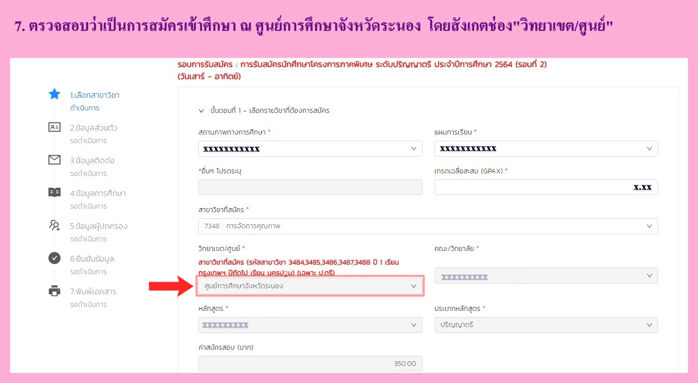 ขั้นตอนการสมัครเข้าศึกษาต่อภาคพิเศษ ระดับปริญญาตรี รอบที่ 2 ปีการศึกษา 2564 ศูนย์การศึกษาจังหวัดระนอง