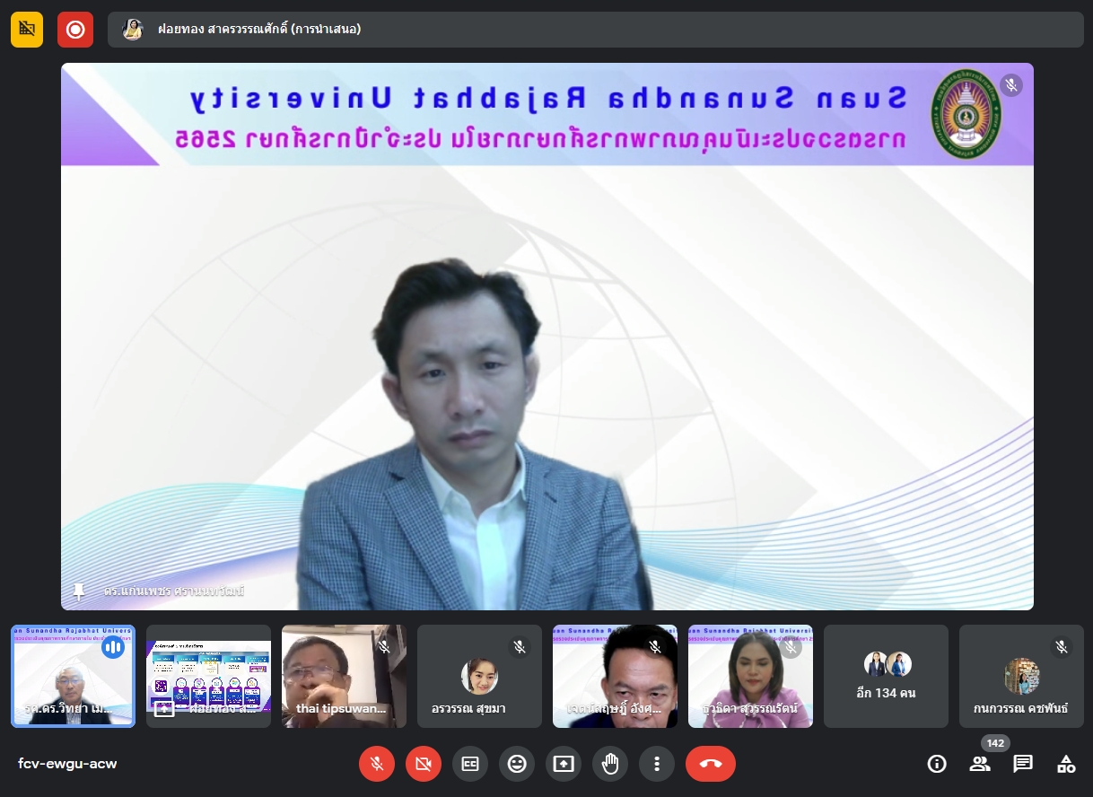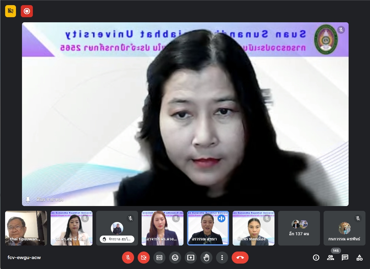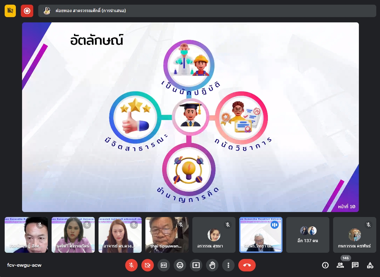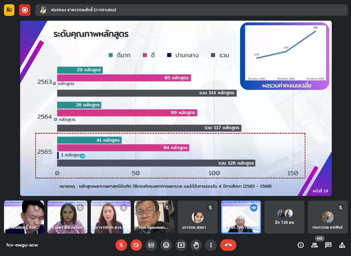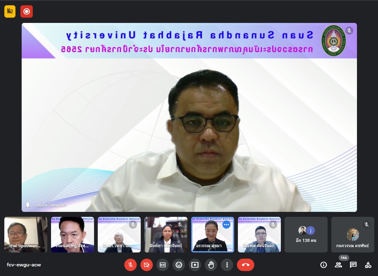 วันนี้ (16 ต.ค.66) เวลา  09.30  น. อาจารย์  ดร.สุวัฒน์  นวลขาว ผู้อำนวยการศูนย์การศึกษาจังหวัดระนอง เข้าร่วมการตรวจประเมินคุณภาพการศึกษาภายใน มหาวิทยาลัยราชภัฏสวนสุนันทา ประจำปีการศึกษา 2565 ระดับสถาบัน ระหว่างวันที่ 17 - 18 ตุลาคม 2566 ณ  ห้องประชุม A306  ศูนย์การศึกษาจังหวัดระนอง  ในรูปแบบออนไลน์ โปรแกรม Google Meet โดยมี รศ.ดร.ชุติกาญจน์  ศรีวิบูลย์ อธิการบดีมหาวิทยาลัยราชภัฏสวนสุนันทา กล่าวต้อนรับคณะกรรมการตรวจประเมินคุณภาพการศึกษาภายใน