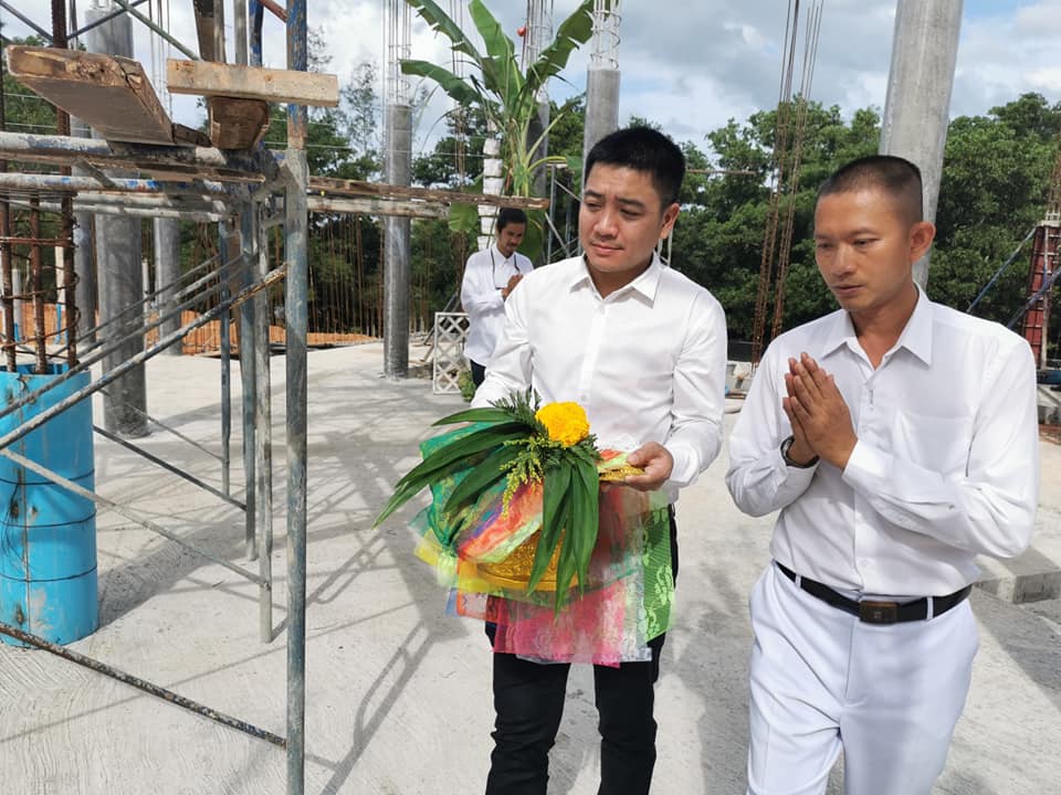 อาจารย์สุวัฒน์ นวลขาว รักษาการผู้อำนวยการศูนย์การศึกษาจังหวัดระนอง พร้อมด้วยนางปราณีพร บุญประภาศรี หัวหน้าหน่วยตรวจสอบภายใน นางสาววนัสนาฏ ประพาลา รักษาการหัวหน้าสำนักงานศูนย์การศึกษาจังหวัดระนอง นางอัญชัญ จงเจริญ ที่ปรึกษาผู้อำนวยการศูนย์การศึกษาจังหวัดระนอง และคณะบุคลากร เข้าร่วมพิธีบวงสรวงและยกเสาเอกอาคารเรียนรวมและปฏิบัติการ ศูนย์การศึกษาจังหวัดระนอง ซึ่งจัดโดยบริษัท I-xav Corporation ณ บริเวณที่ก่อสร้างอาคาร มหาวิทยาลัยราชภัฏสวนสุนันทา ศูนย์การศึกษาจังหวัดระนอง