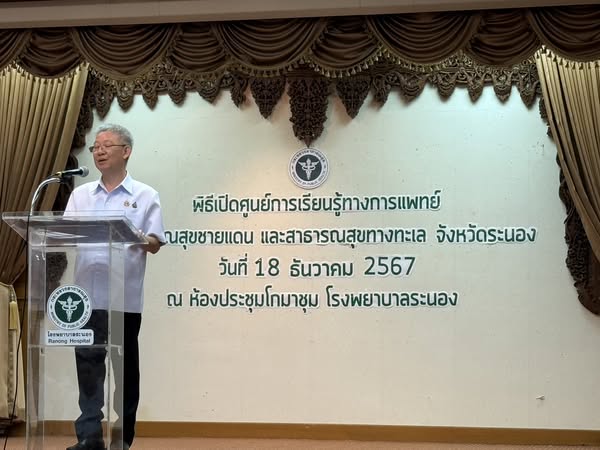 This morning (18 Dec. 2024) Professor Dr. Suwat Nuankhao, Director of the Ranong Provincial Education Center. Suan Sunandha Rajabhat University Participated in opening the Border Medical and Public Health Learning Center and Marine Public Health, Ranong Province, at Ranong Hospital with Dr. Opas Karikawinpong Permanent Secretary of the Ministry of Public Health presided over the meeting along with Mr. Supoj Phutikiatkhachorn. Deputy Governor of Ranong Province Acting for the government Governor of Ranong Province, Mr. Norathep Asawapatchara, Public Health Doctor of Ranong Province head of government agency Medical and public health personnel participated