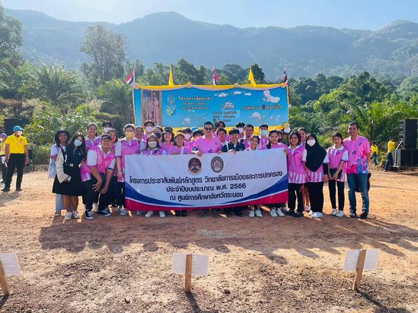 In the morning today (March 21, 2023) Mr. Boonrit Wong Kalasin Lecturer at College of Politics and Government led a group of students from the College of Politics and Government Ranong Education Center Participated in the 2023 watershed forest planting volunteer activity on the occasion of "World Forest Day" at the watershed plantation area of Ngao Waterfall National Park. Mueang Ranong District, Ranong Province