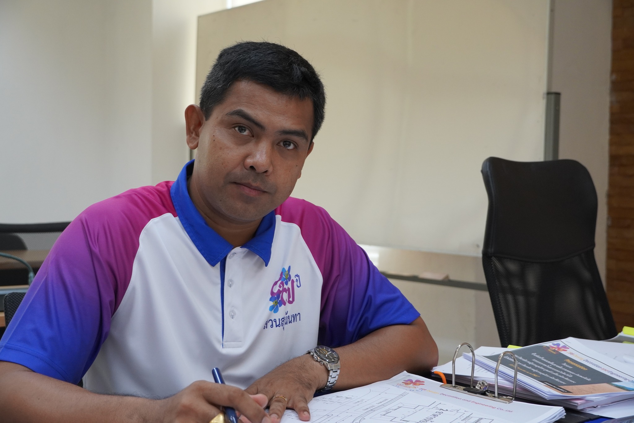 Afternoon, April 24, 2024, Dr. Suwat Nuankhao, Director of Ranong Provincial Education Center As chairman of the employment inspection committee Chaired a construction contract meeting for a road construction project including walkways, parking lots, retaining walls, drainage systems, and wastewater treatment systems. Ranong Provincial Education Center, 4th time, at meeting room A306, Ranong Provincial Education Center Today is a meeting to follow up on progress and inspect the second installment of work.
