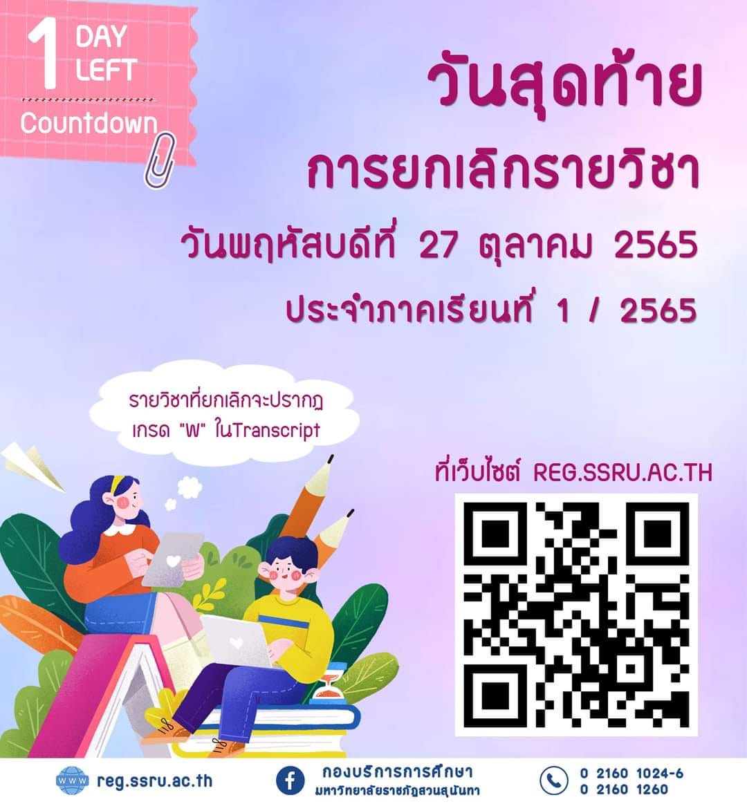 แจ้งเตือนการยกเลิกรายวิชา ประจำภาคเรียนที่ 1/2565