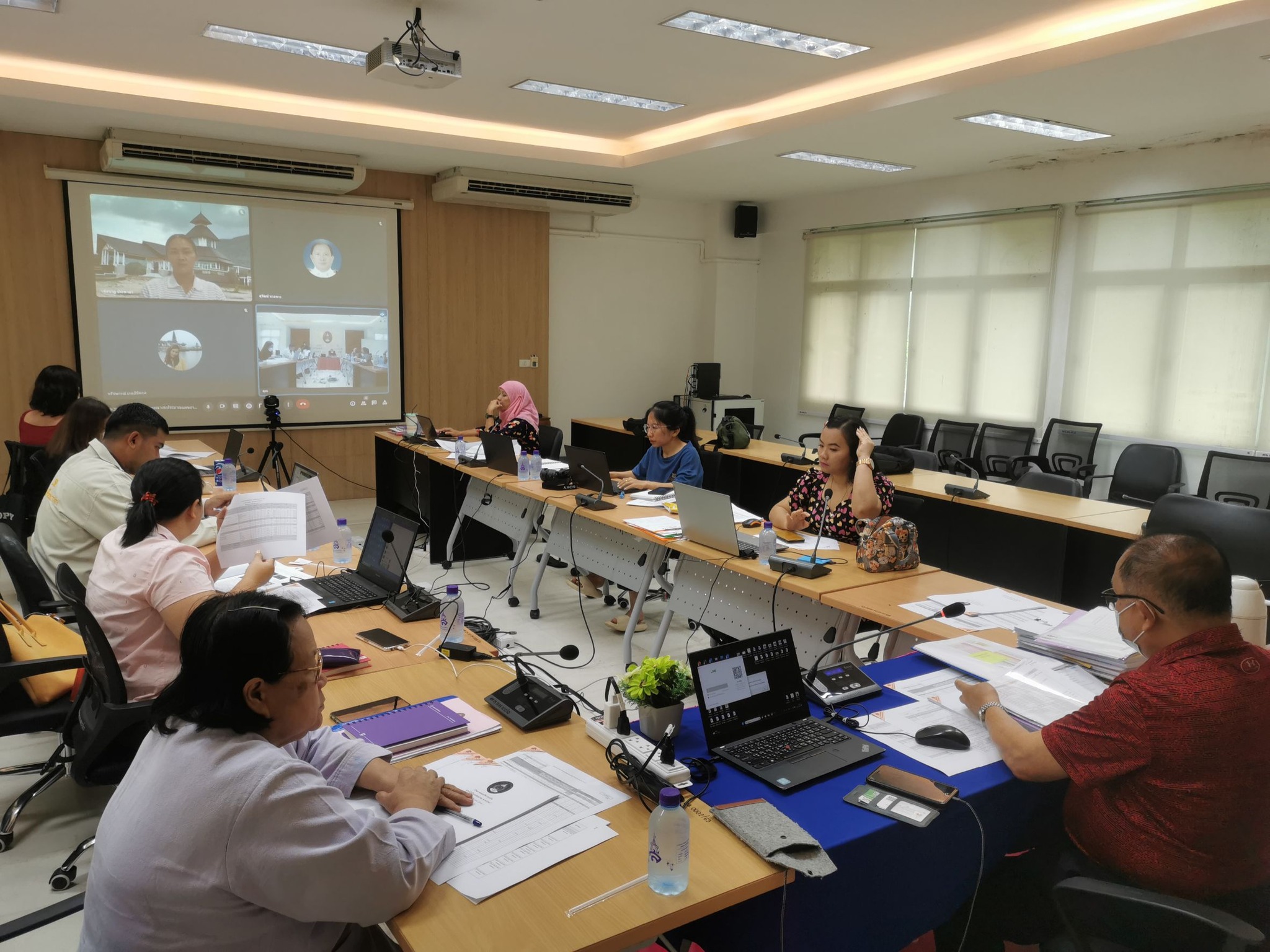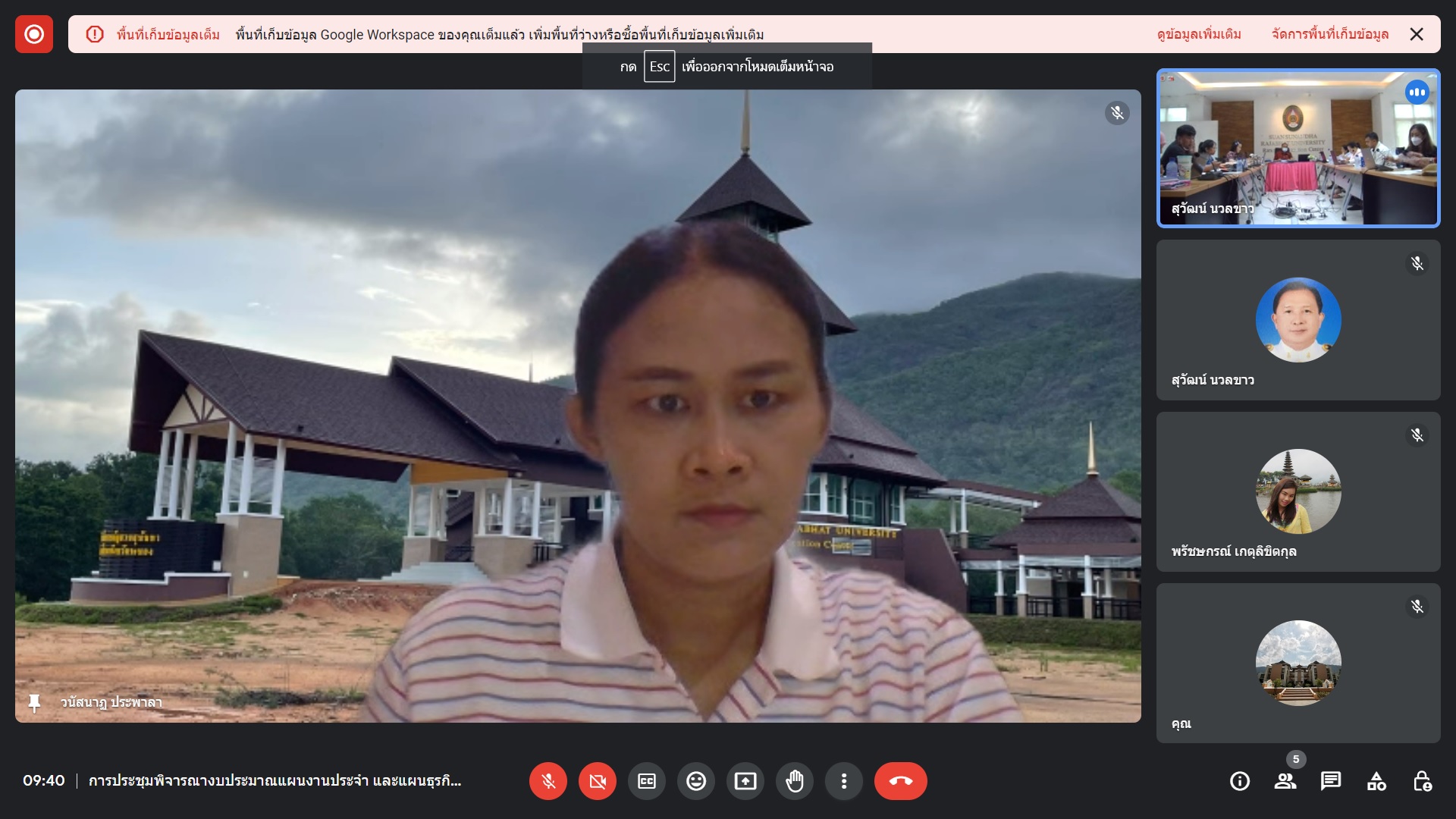 In the morning today (June 18, 2023), Dr. Suwat Nuankhao, director of the Ranong Provincial Education Center, presided over the meeting to discuss budgets, regular work plans and business plans for the fiscal year 2024 at meeting room A306, Suan Sunandha Rajabhat University. Ranong Education Center Ms. Wanatnart Praphala, Acting Head of the Center's Office, participated online.