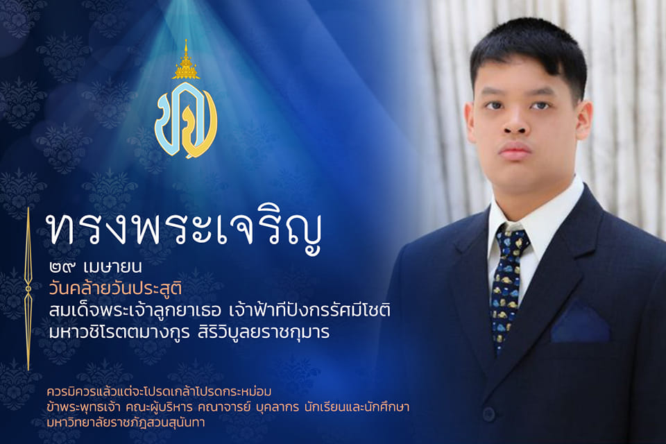 เนื่องในโอกาสวันคล้ายวันประสูติสมเด็จพระเจ้าลูกยาเธอ เจ้าฟ้าทีปังกรรัศมีโชติ มหาวชิโรตตมางกูร สิริวิบูลยราชกุมาร วันที่ ๒๙ เมษายน ๒๕๖๖ ขอประทานถวายพระพรชัยมงคล