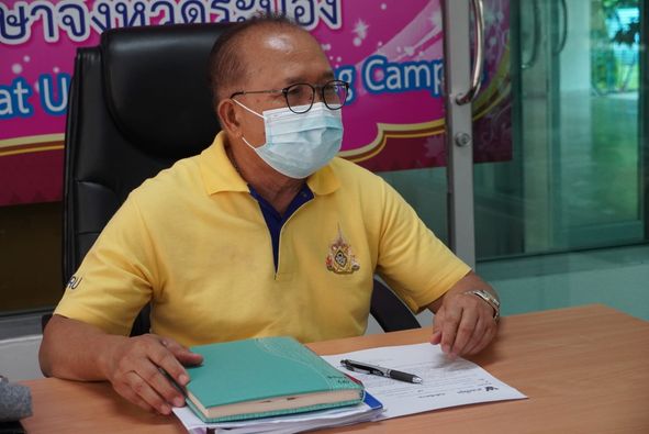 On December 3, 2021 at 9:00 a.m., Ajarn Suwat Nuankhao, Director of the Ranong Provincial Education Center Along with Mrs. Anchan Chongcharoen, the advisor, attended the meeting on the preparation of an integrated plan for higher education to drive the de
