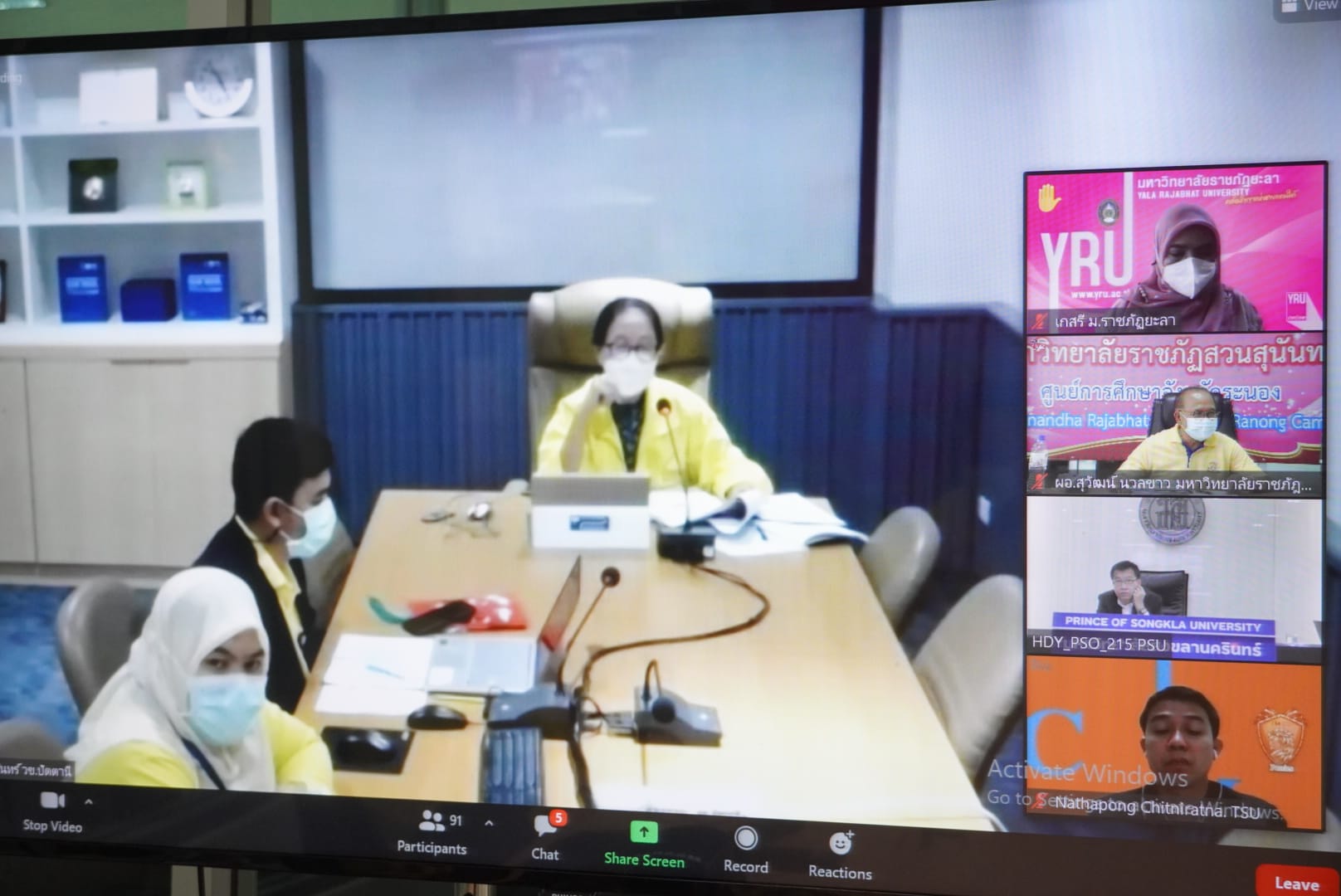 วันที่ 3 ธันวาคม 2564  เวลา 09.00 น. อาจารย์สุวัฒน์ นวลขาว ผู้อำนวยการศูนย์การศึกษาจังหวัดระนอง พร้อมด้วยนางอัญชัญ จงเจริญ ที่ปรึกษาผู้อำนวยการศูนย์ฯเข้าร่วมการประชุมปรึกษาหารือ เรื่อง การจัดทำแผนบูรณาการงานด้านอุดมศึกษาฯเพื่อขับเคลื่อนการพัฒนาภาคใต้ พ.ศ.2566 - 2570   ณ ห้องประชุม AIC  ศูนย์การศึกษาจังหวัดระนอง  ผ่านระบบการประชุมออนไลน์(Zoom)  การประชุมฯครั้งนี้จัดขึ้นเพื่อสร้างความเข้าใจร่วมกัน และมีการเตรียมวิเคราะห์ศักยภาพและโอกาสร่วมในการบูรณาการแผนงานต่าง ๆ จัดโดยความร่วมมือของสำนักงานเครือข่ายอุดมศึกษาภาคใต้ตอนบน(มหาวิทยาลัยวลัยลักษณ์)   สำนักงานเครือข่ายอุดมศึกษาภาคใต้ตอนล่าง(มหาวิทยาลัยสงขลานครินทร์)  และสำนักงานสภาพัฒนาการเศรษฐกิจและสังคมแห่งชาติ