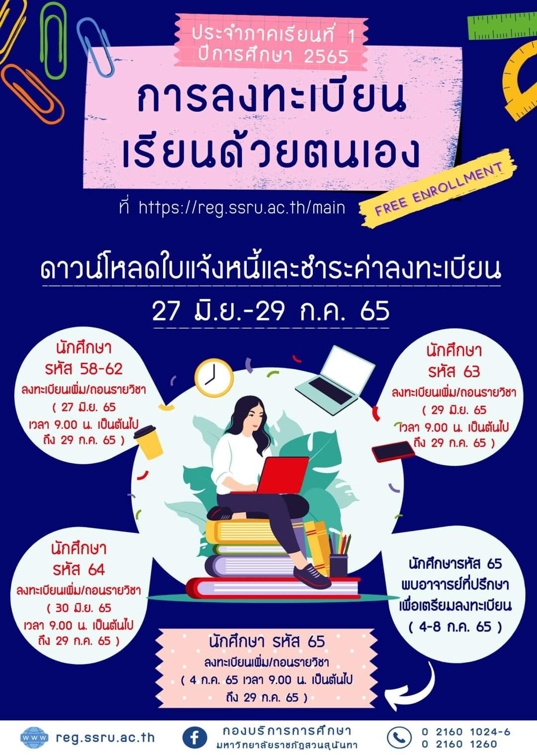 การลงทะเบียนเรียนด้วยตนเอง (Free Enrollment) ประจำภาคเรียนที่ 1 ปีการศึกษา 2565 ที่เว็บไซต์