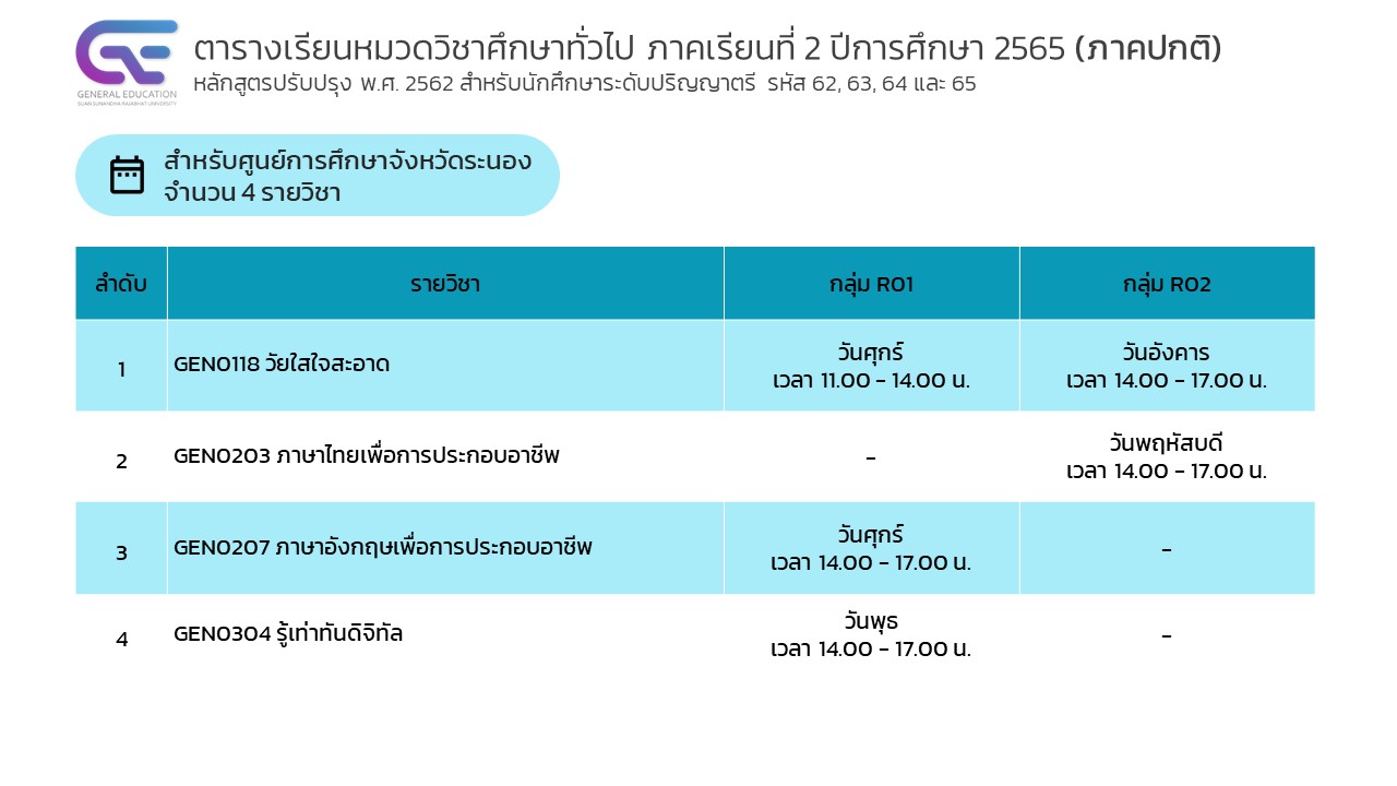 ประกาศตารางเรียนหมวดวิชาศึกษาทั่วไป ภาคเรียนที่ 2 ปีการศึกษา 2565