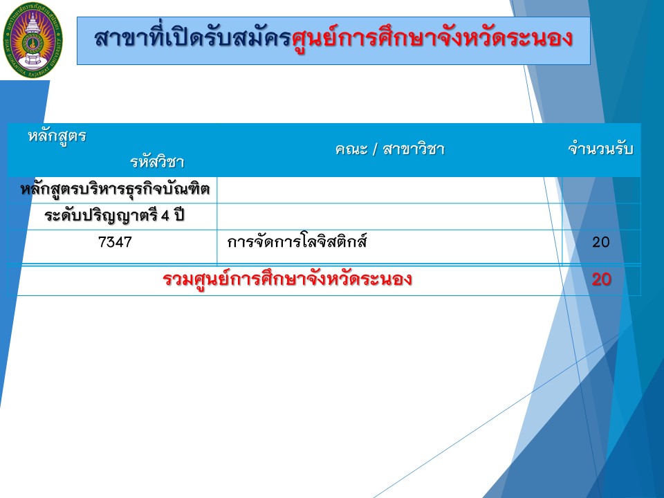 Logistics Management major Open for applications for new students, regular semester, bachelor's degree level. Academic year 2024 (Round 4 Direct Admission)