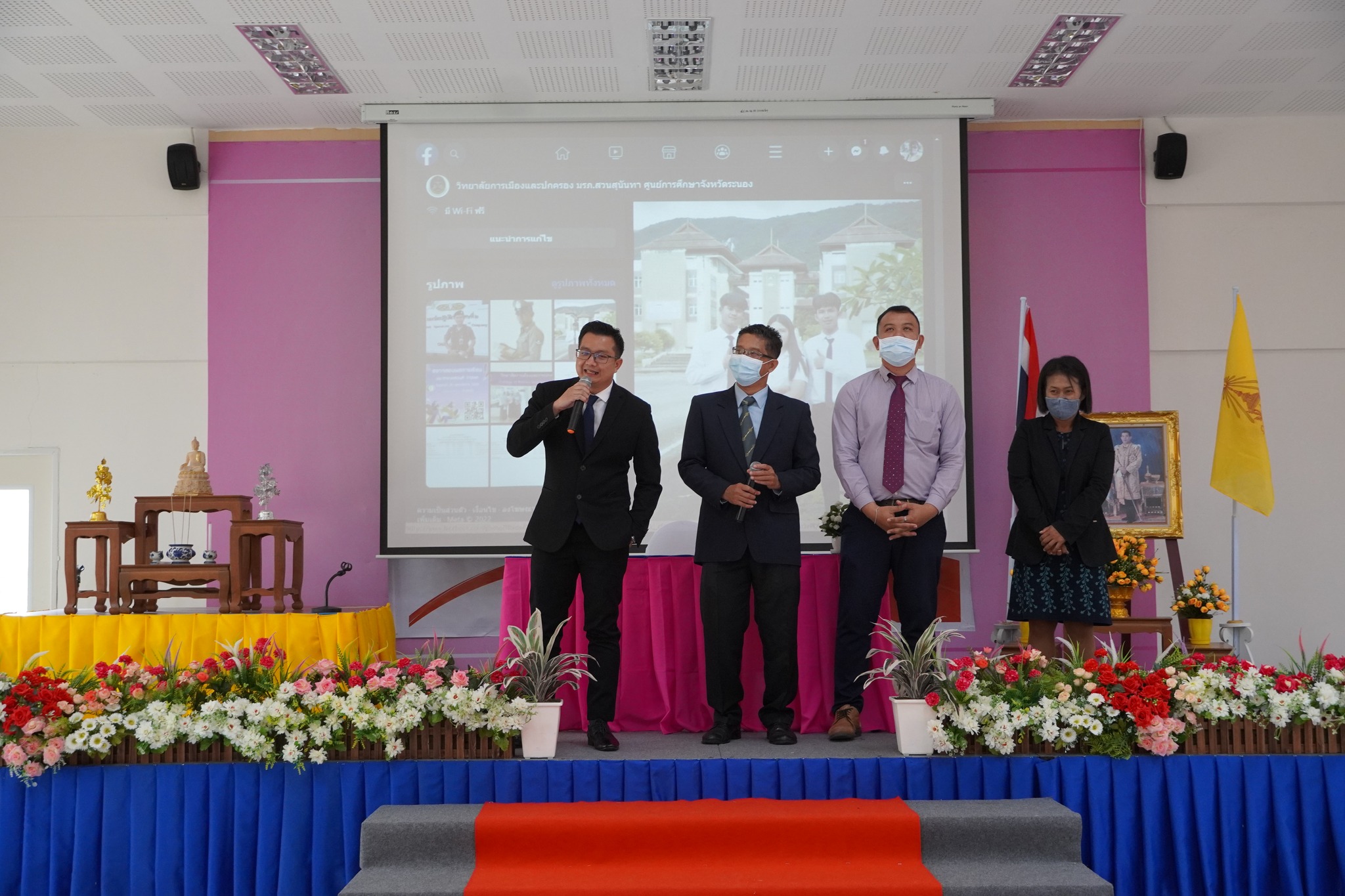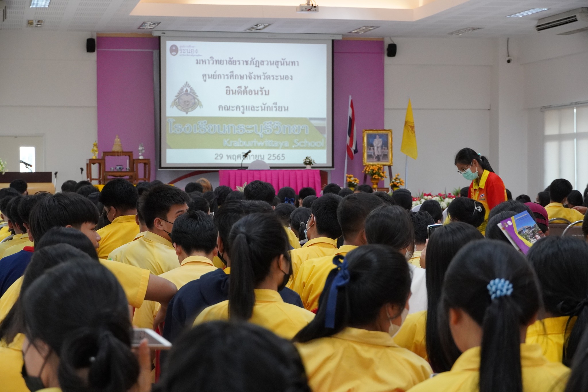 ช่วงบ่าย วันที่ 29 พฤศจิกายน 2565 มหาวิทยาลัยราชภัฏสวนสุนันทา ศูนย์การศึกษาจังหวัดระนอง ได้รับเกียรติจากคณะครู อาจารย์ และนักเรียนโรงเรียนกระบุรีวิทยา ประมาณ 201 คน เข้ามาเยี่ยมชมที่ศูนย์ฯ โดยมีนางอัญชัญ จงเจริญ ที่ปรึกษาผู้อำนวยการศูนย์ฯ กล่าวต้อนรับ และได้รับเกียรติจากนายพงศกร พรหมสุวรรณ รองนายกองค์การบริหารส่วนจังหวัดระนอง (ศิษย์เก่าโรงเรียนกระบุรีวิทยา) ให้คำแนะนำเรื่องศึกษาในระดับอุดมศึกษา จากนั้นคณาจารย์ศูนย์การศึกษาจังหวัดระนอง ได้แนะแนวการเรียนการสอนและแนวทางประกอบอาชีพในการเรียนสาขาต่าง ๆ และได้รับความสนใจจากคณะครู นักเรียนเป็นอย่างดี