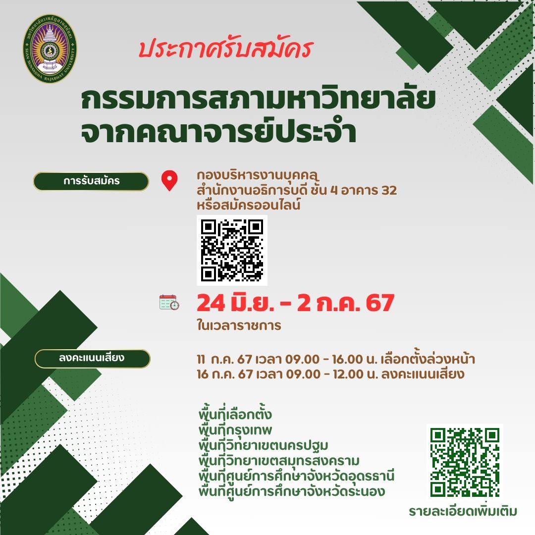 ประกาศรับสมัคร กรรมการสภามหาวิทยาลัยจากคณาจารย์ประจำ ตั้งแต่วันที่ 24 มิ.ย. - 2 ก.ค. 67