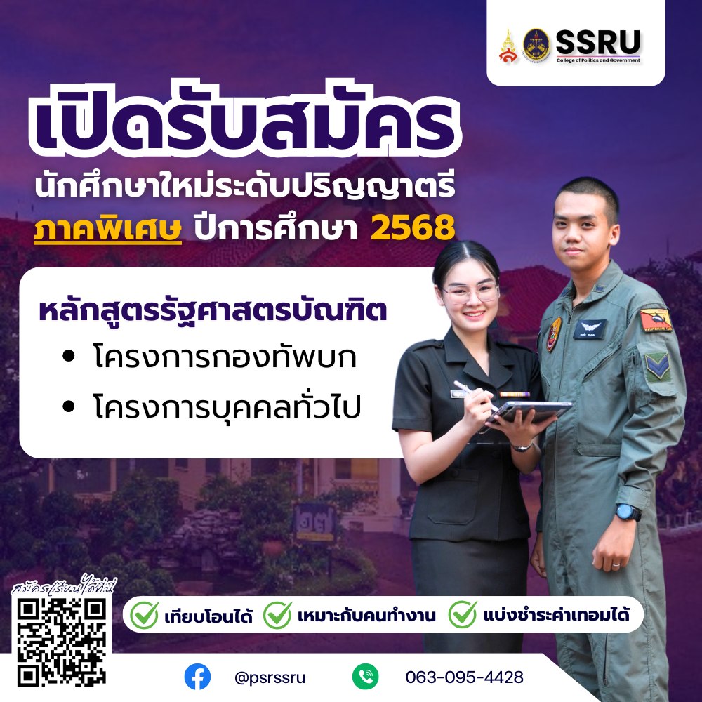 College of Politics and Government Suan Sunandha Rajabhat University Ranong Provincial Education Center Classroom Announcement for recruitment of new undergraduate students, special semester, academic year 2025