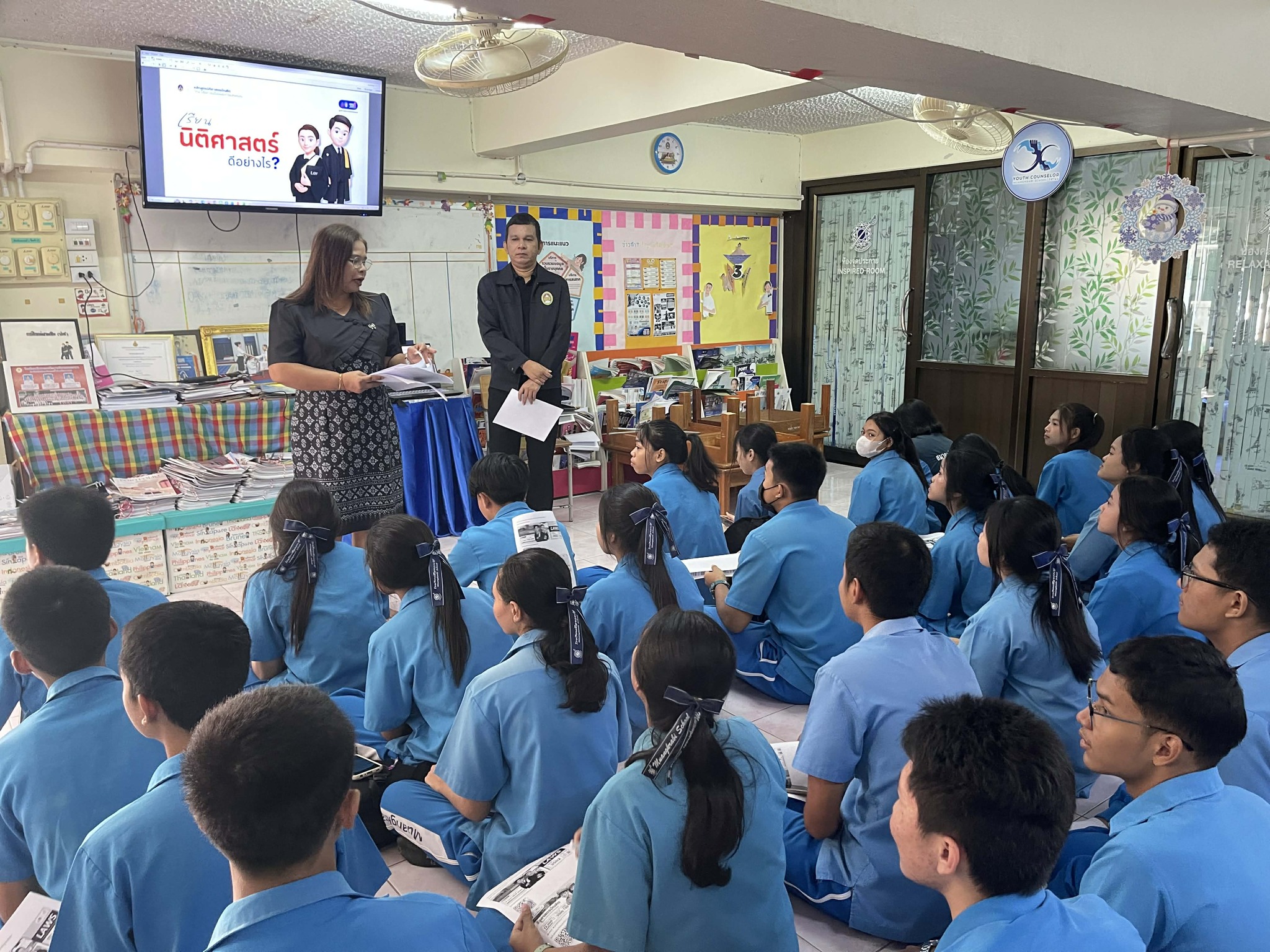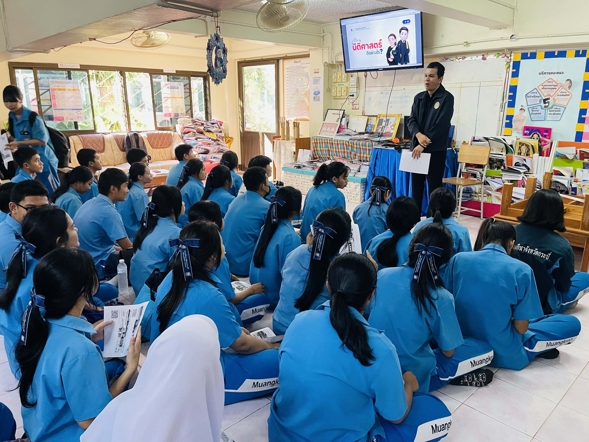 To Mathayom 6 students, 3 classrooms, at