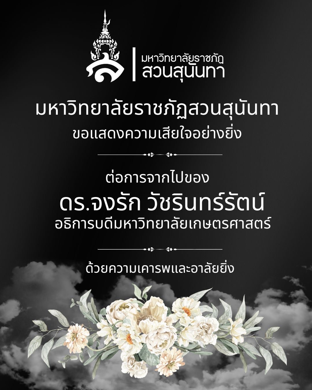 I would like to express my deepest condolences. On the passing of Dr. Jongrak Watcharinrat President of Kasetsart University