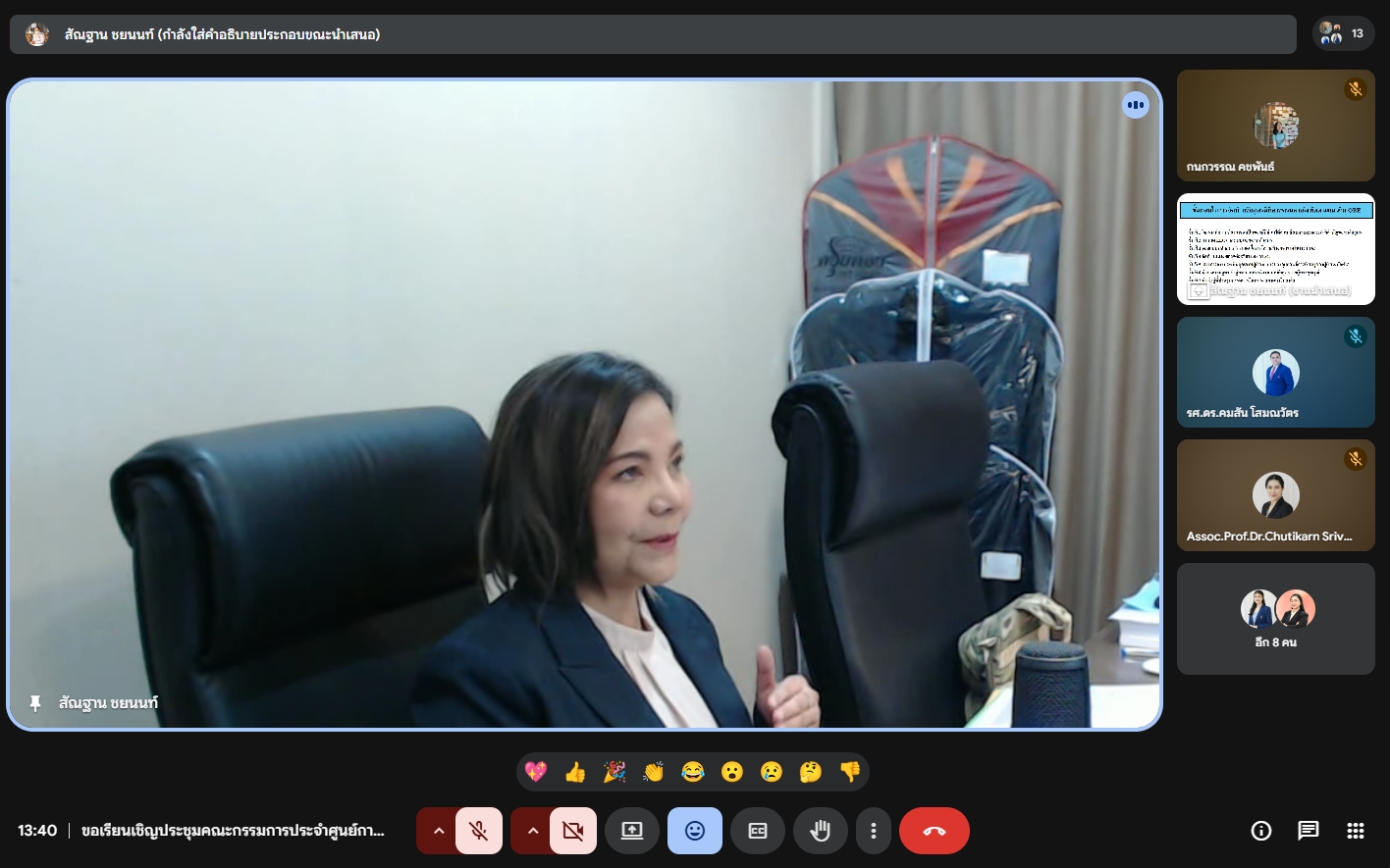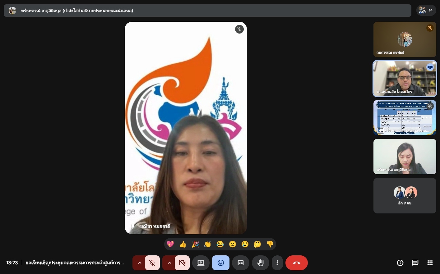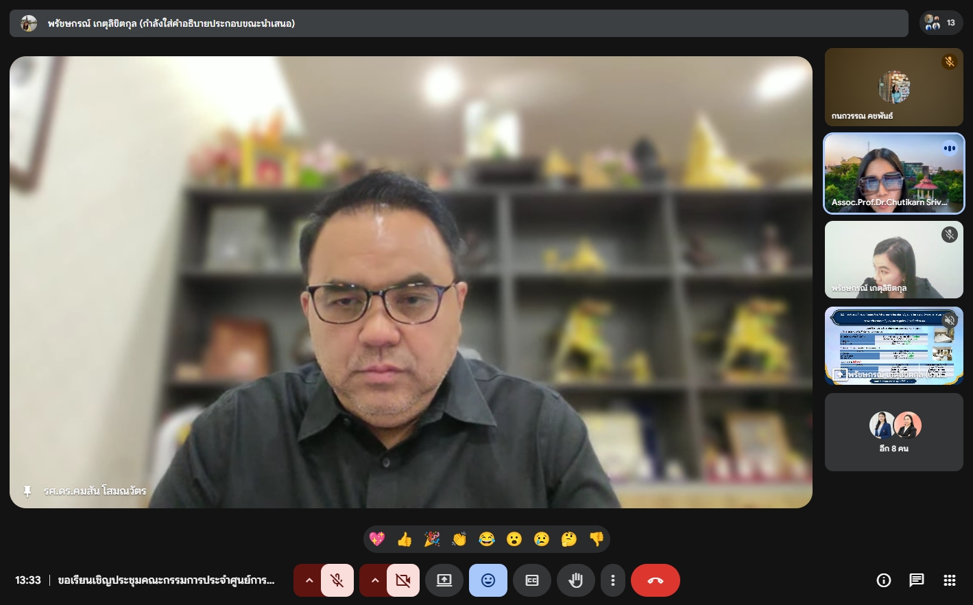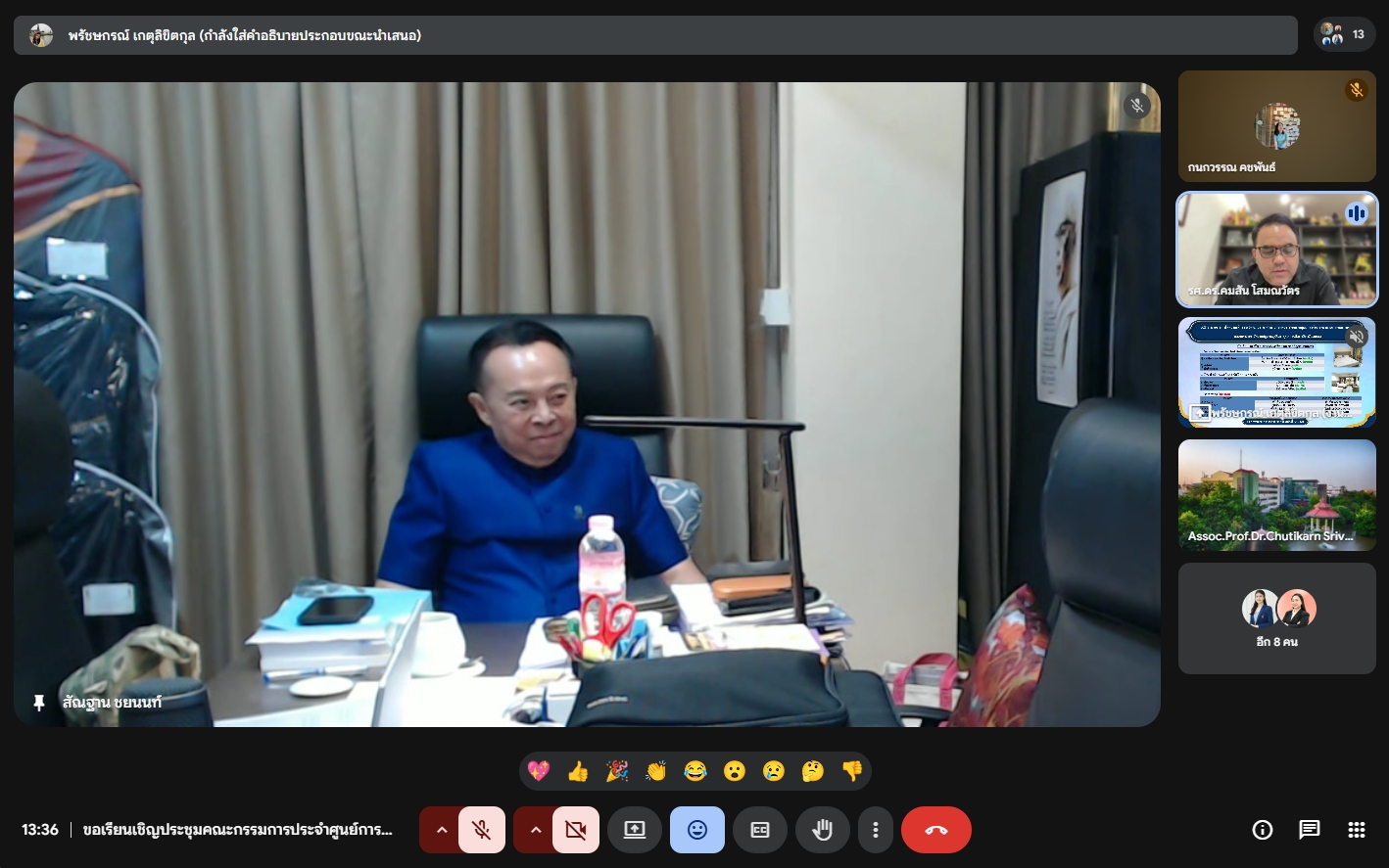 วันที่ 26 มกราคม 2569 นางสาวพรัชษกรณ์ เกตุลิขิตกุล รักษาการในตำแหน่งผู้อำนวยการกองบริหารศูนย์ ศูนย์การศึกษาจังหวัดระนอง เข้าร่วมการประชุมคณะกรรมการประจำศูนย์การศึกษาจังหวัดระนอง ครั้งที่ 1/2569 ผ่านระบบการประชุมออนไลน์ โดยมีรองศาสตราจารย์ ดร. ชุติกาญจน์ ศรีวิบูลย์ อธิการบดีมหาวิทยาลัยราชภัฏสวนสุนันทา เป็นประธาน พร้อมด้วยคณะผู้บริหารมหาวิทยาลัยราชภัฏสวนสุนันทา รองคณบดี และบุคลากรที่เกี่ยวข้อง