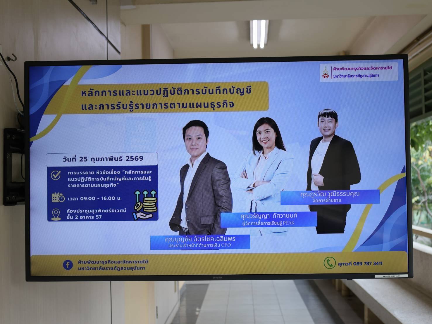 วันนี้ (26 ก.พ. 69)   นางสาวพรัชษกรณ์ เกตุลิขิตกุล รักษาการในตำแหน่งผู้อำนวยการกองบริหารศูนย์ เข้าร่วมโครงการอบรม เรื่อง หลักการและแนวปฏิบัติการบันทึกบัญชีและการรับรู้รายการตามแผนธุรกิจ  ณ  ห้องประชุมสุวพักตร์นิเวศน์ (5724)  คณะวิทยาการจัดการ โดยมี รศ.ดร.วิทยา เมฆขำ รองอธิการบดีฝ่ายแผนงานและประกันคุณภาพ เป็นประธาน