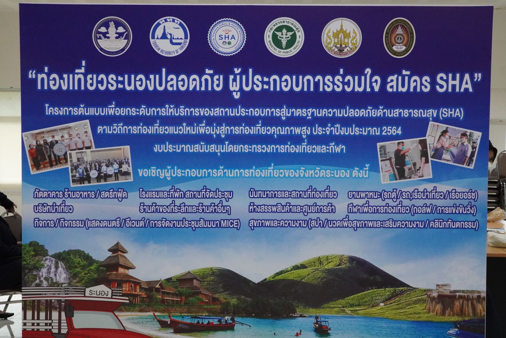 สนง.การท่องเที่ยวและกีฬาจังหวัดระนอง จัดอบรม "โครงการต้นแบบเพื่อยกระดับการให้บริการของสถานประกอบการสู่มาตรฐานความปลอดภัยด้านสาธารณสุข (SHA) ตามวิถีการท่องเที่ยวแนวใหม่ (New Normal Tourism Services)เพื่อมุ่งสู่การท่องเที่ยวคุณภาพสูง ประจำปีงบประมาณ 2564"