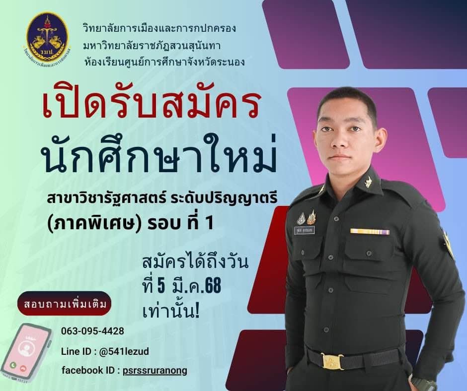 สมัครเรียนได้ที่ https://admission.ssru.ac.th/login