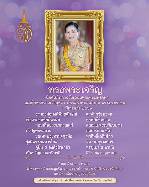 ๓ มิถุนายน วันเฉลิมพระชนมพรรษา สมเด็จพระนางเจ้าสุทิดา พัชรสุธาพิมลลักษณ พระบรมราชินี