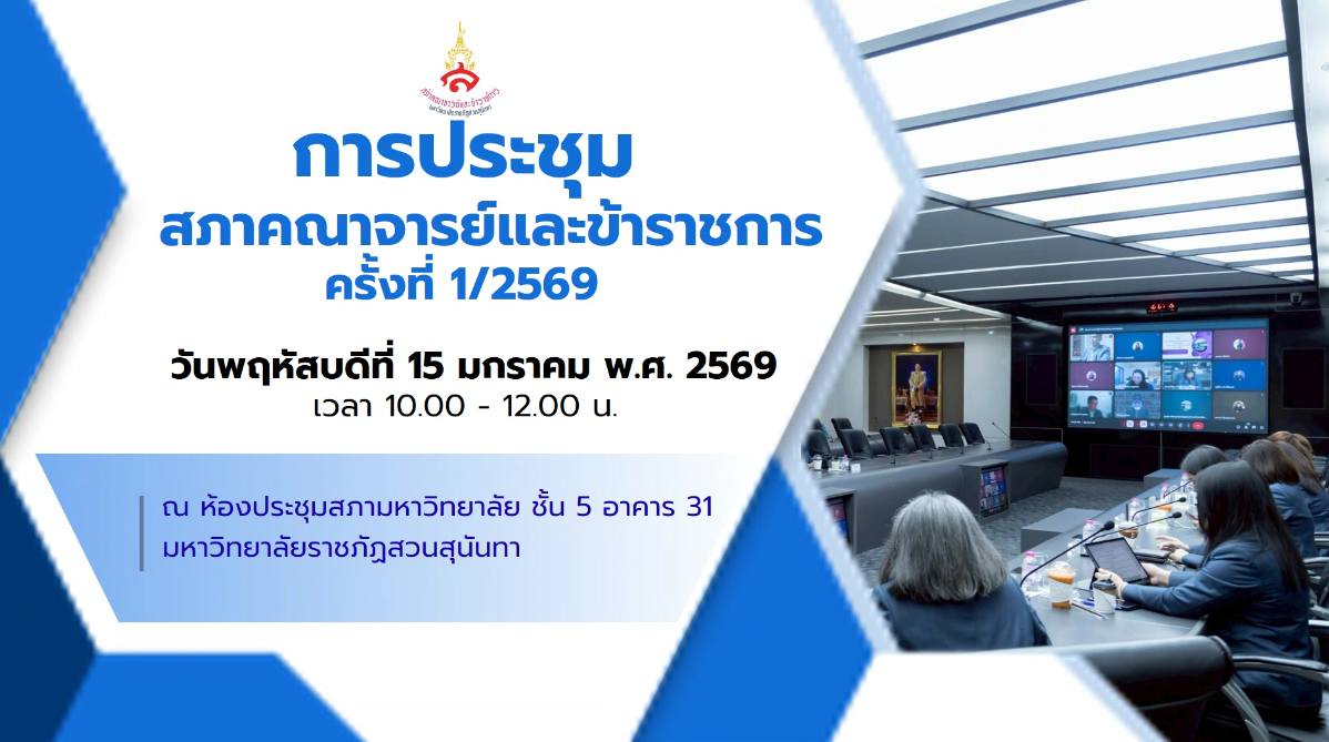 ช่วงเช้า วันที่ 15 มกราคม 2569 นายจตุรพร จันทร์ทวี วิศวกร และอาจารย์วทัญญู ชูภักตร์ หัวหน้าสาขาวิชาการจัดการโลจิสติกส์ ศูนย์การศึกษาจังหวัดระนอง ในฐานะกรรมการสภาคณาจารย์และข้าราชการ มหาวิทยาลัยราชภัฏสวนสุนันทา เข้าร่วมประชุมสภาคณาจารย์และข้าราชการ มหาวิทยาลัยราชภัฏสวนสุนันทา ครั้งที่ 1/2569 ผ่านระบบการประชุมออนไลน์ ณ ศูนย์การศึกษาจังหวัดระนอง มหาวิทยาลัยราชภัฏสวนสุนันทา โดยมี อาจารย์ ดร.สกุล จริยาแจ่มสิทธิ์ ประธานสภาคณาจารย์และข้าราชการ เป็นประธานในที่ประชุม