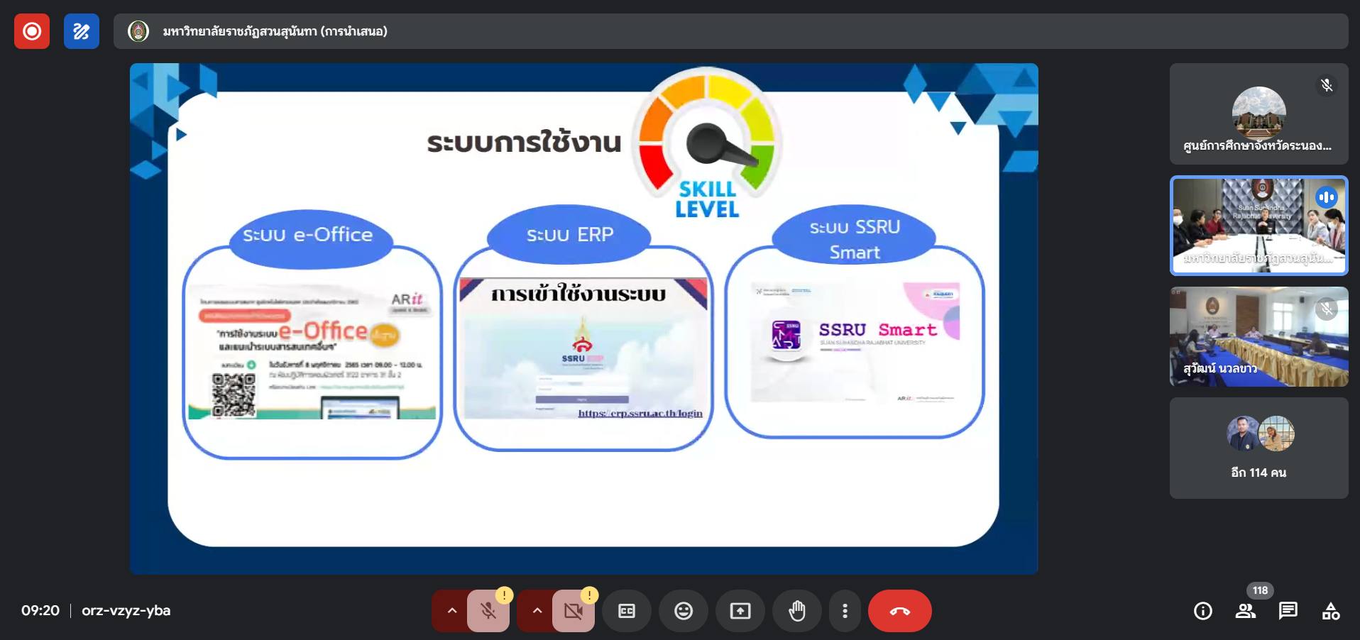 ช่วงเช้า วันนี้ (8 ต.ค.67) อาจารย์ ดร.สุวัฒน์ นวลขาว ผู้อำนวยการศูนย์การศึกษาจังหวัดระนอง พร้อมด้วยบุคลากรที่เกี่ยวข้อง เข้าร่วมการประชุมจัดทำแผนปฏิบัติการด้านดิจิทัล และชี้แจงแนวทางการดำเนินงานการติดตาม และประเมินผลตัวชี้วัดตามแผนปฏิบัติการประจำปีงบประมาณ พ.ศ.2568 สำนักวิทยบริการและะเทคโนโลยีสารสนเทศ มหาวิทยาลัยราชภัฏสวนสุนันทา ณ ห้องประชุม A306 ศูนย์การศึกษาจังหวัดระนอง โดยมี รองศาสตราจารย์ ดร.ศิริลักษณ์ เกตุฉาย ผู้อำนวยการสำนักวิทยบริการและเทคโนโลยีสารสนเทศ เป็นประธาน