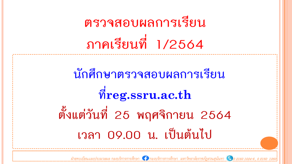 > การตรวจสอบผลการเรียน ภาคเรียนที่ 1/2564 ที่ reg.ssru.ac.th