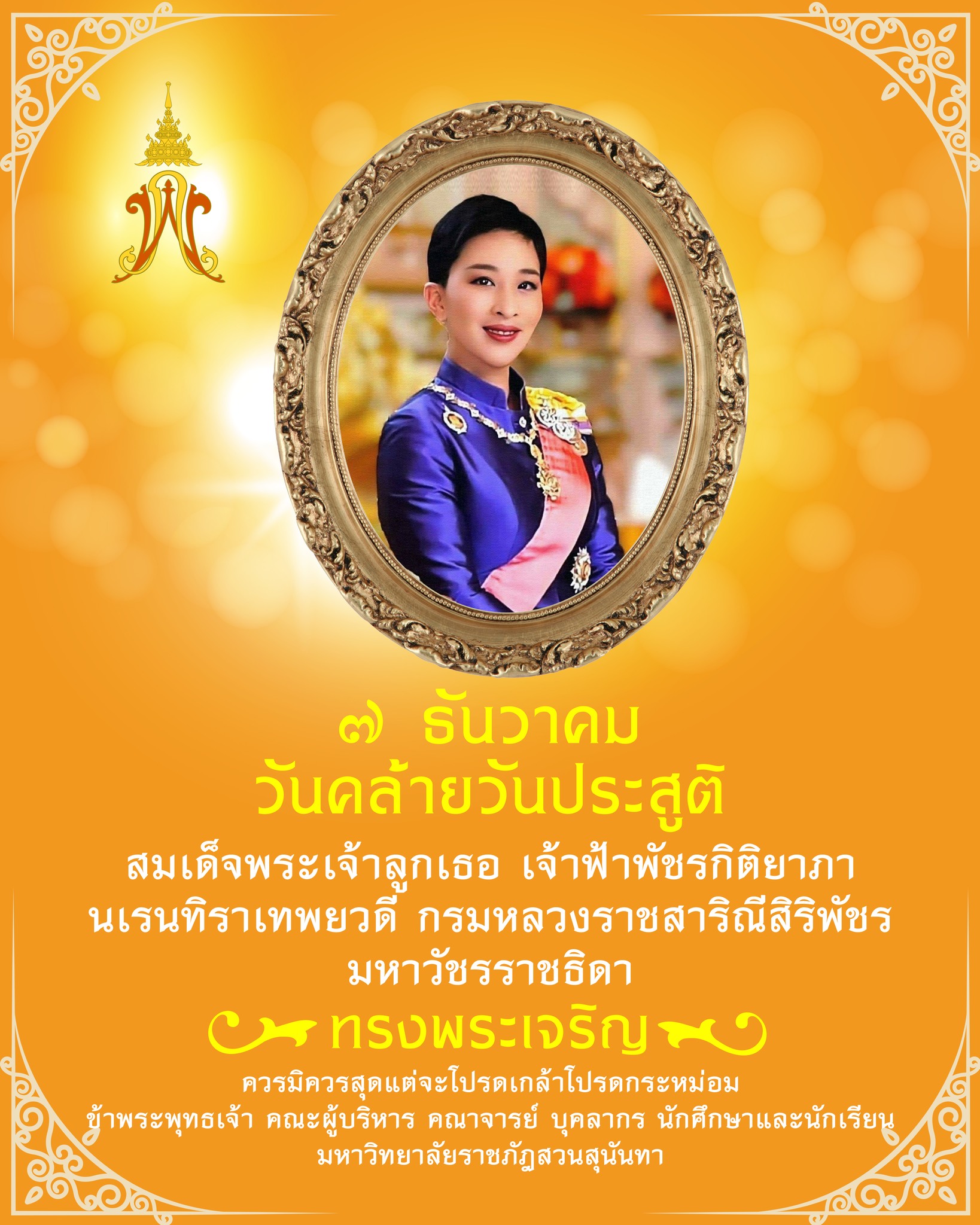 7 ธันวาคม วันคล้ายวันประสูติสมเด็จพระเจ้าลูกยาเธอ เจ้าฟ้าพัชรกิติยาภา นเรนทิราเทพยวดี กรมหลวงราชสาริณีสิริพัชร มหาวัชรราชธิดา
