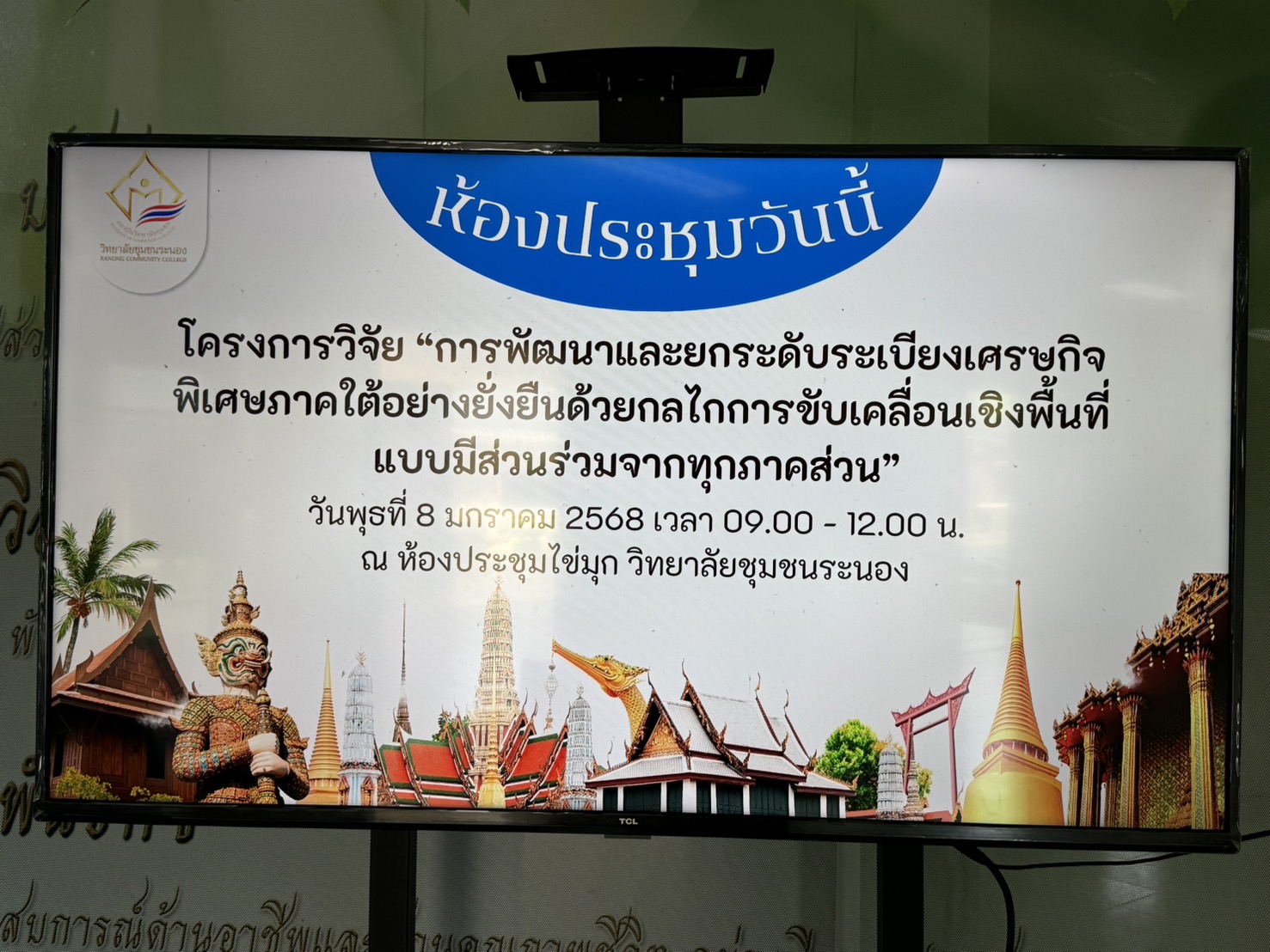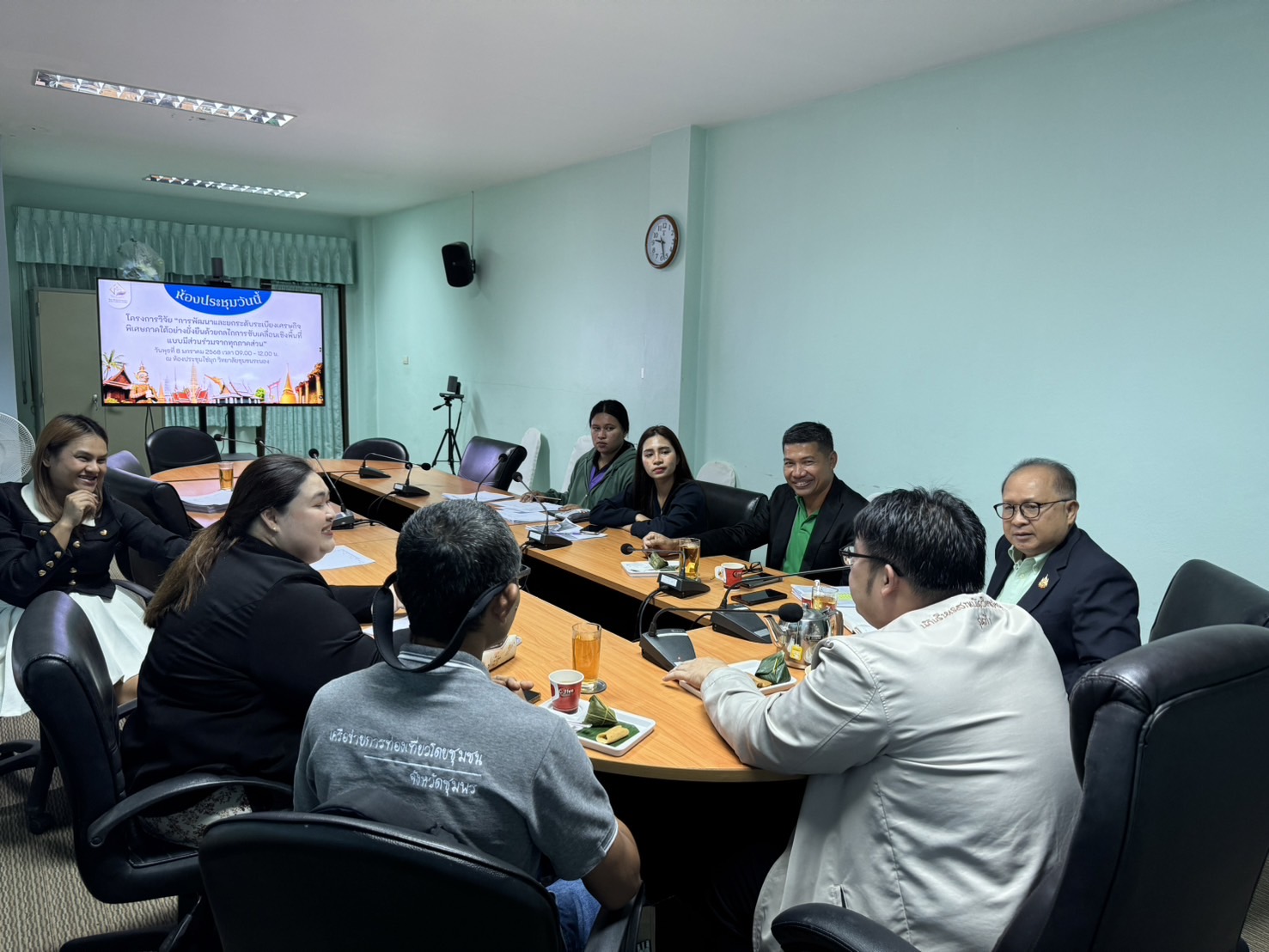 ช่วงเช้า วันนี้(8 ม.ค.68) อาจารย์ ดร.สุวัฒน์ นวลขาว ผู้อำนวยการศูนย์การศึกษาจังหวัดระนอง เข้าร่วมการประชุมโครงการวิจัย "การพัฒนาและยกระดับระเบียงเศรษฐกิจพิเศษภาคใต้ด้วยกลไกขับเคลื่อนเชิงพื้นที่แบบมีส่วนร่วมจากทุกภาคส่วน" ณ ห้องประชุมไข่มุก วิทยาลัยชุมชนระนอง