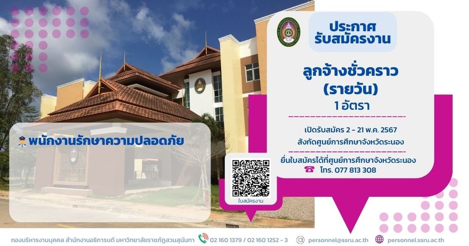 ประกาศรับสมัครลูกจ้างชั่วคราว (รายวัน) พนักงานรักษาความปลอดภัย 1 อัตรา