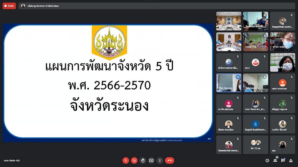 วันที่ 10 กันยายน 2564 เวลา 13.00 น. อาจารย์สุวัฒน์ นวลขาว ผู้อำนวยการศูนย์การศึกษาจังหวัดระนอง นางอัญชัญ จงเจริญ ที่ปรึกษาผู้อำนวยการศูนย์ฯ และผู้ที่เกี่ยวข้องประชุมคณะกรรมการหน่วยปฏิบัติการส่วนหน้า จังหวัดระนอง ครั้งที่ 1/2564 ณ ห้องประชุม ชั้น 3 ผ่านระบบออนไลน์ โปรแกรมGoogle Meet โดยมีรศ.ดร.ชุติกาญจน์ ศรีวิบูลย์ อธิการบดี กล่าวเปิดประชุม และผศ.ดร.สุวรีย์ ยอดฉิม รองอธิการบดีฝ่ายวิจัยและพัฒนา เป็นประธานในการประชุม ในการประชุมครั้งนี้มีตัวแทนจากหน่วยงานส่วนราชการในจังหวัดระนองและตัวแทนจากสถาบันการศึกษาสามแห่งเข้าร่วมประชุม ซึ่งสถาบันการศึกษาสามแห่งเป็นหน่วยงานที่ดำเนินโครงการยกระดับเศรษฐกิจและสังคมรายตำบลแบบบูรณาการ(U2T)ในพื้นที่จังหวัดระนอง ได้แก่ มหาวิทยาลัยเกษตรศาสตร์ มหาวิทยาลัยราชภัฎสุราษฎ์ธานี มหาวิทยาลัยแม่โจ้ และวิทยาลัยชุมชนจังหวัดระนอง